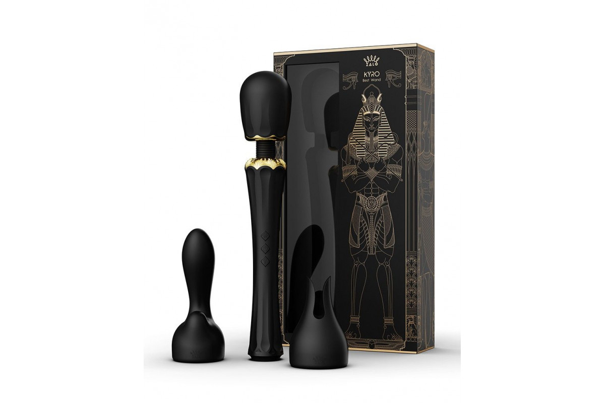 Черный wand-вибратор Kyro с 2 насадками — идеальный выбор для экспертов и новичков