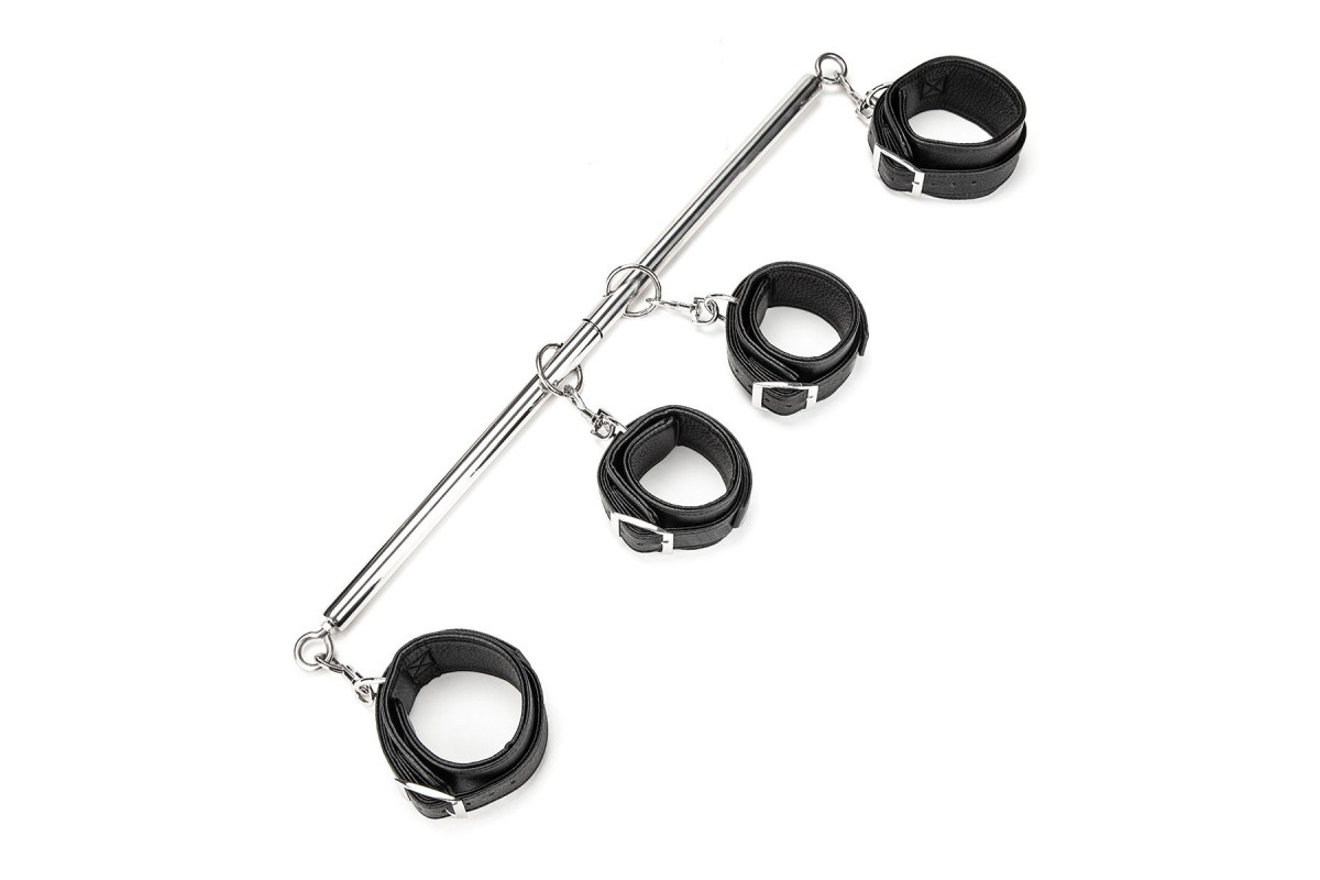 Две пары черных фиксаторов для рук и ног на металлической распорке Spreader Bar