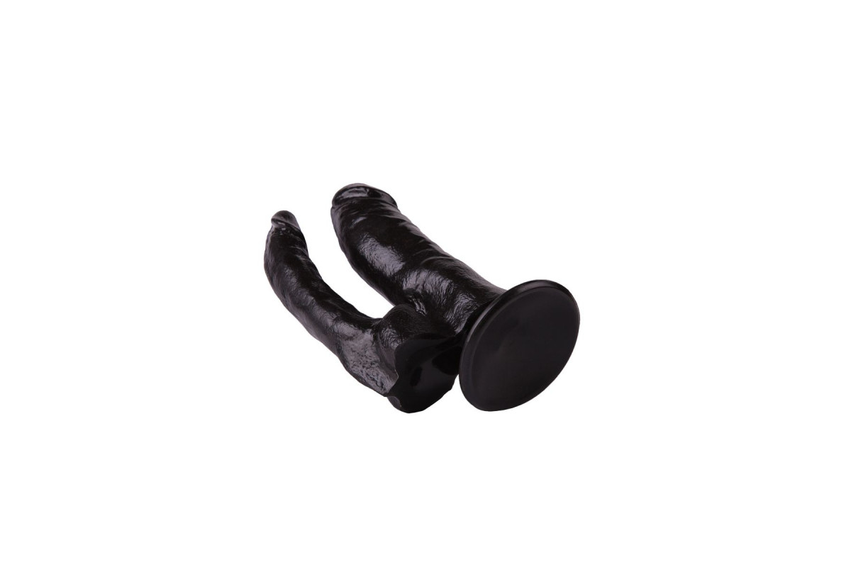 Двойной чёрный фаллоимитатор на присоске – 15 см