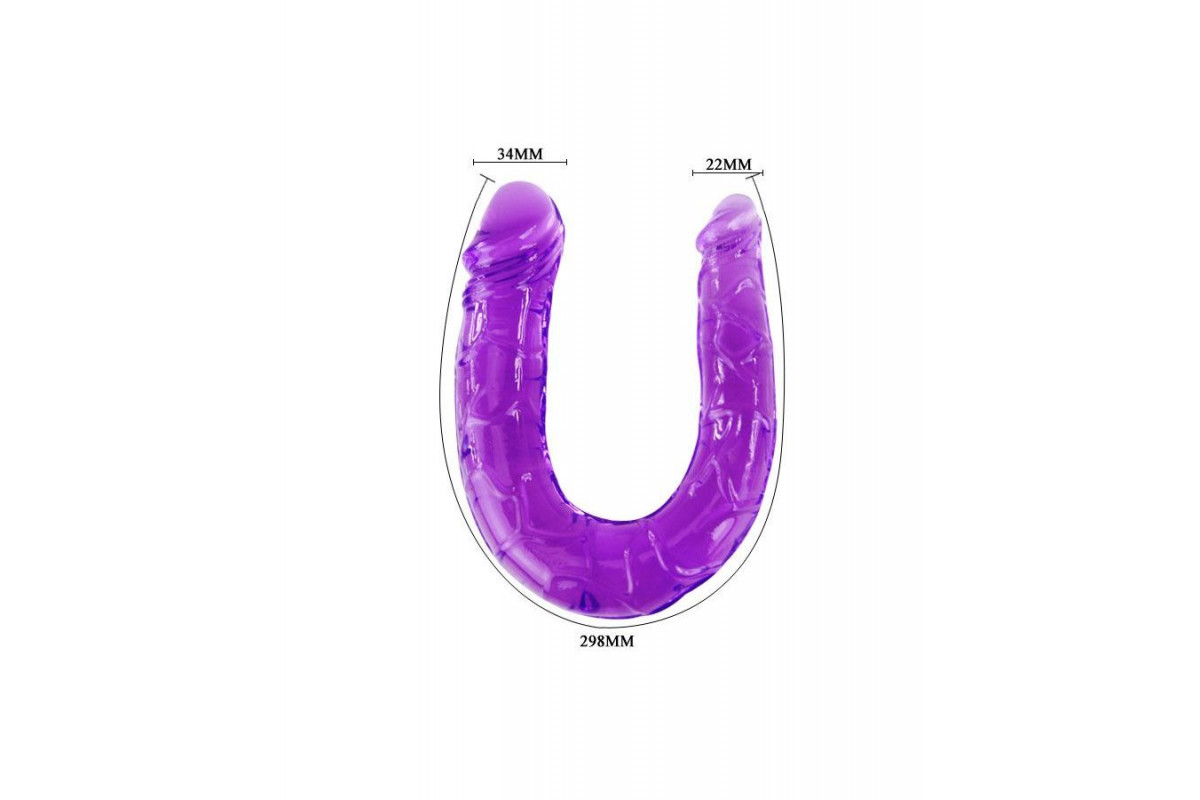 Двухголовый фиолетовый фаллоимитатор - 29,8 см.
