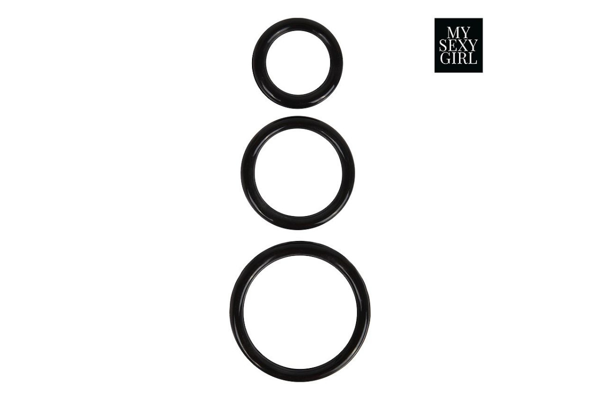 Благодаря мягкому эластичному материалу интимный аксессуар отлично растягивается, принимая форму пениса. Внутренние поверхности изделия имеют рельефную поверхность, что способствует дополнительной стимуляции полового члена. Эрекционные кольца обеспечат сильную эрекцию и продлят интимную близость. Они хорошо тянутся, подходят для пенисов разных размеров. Внутренний диаметр колец - 5, 4 и 3 см.