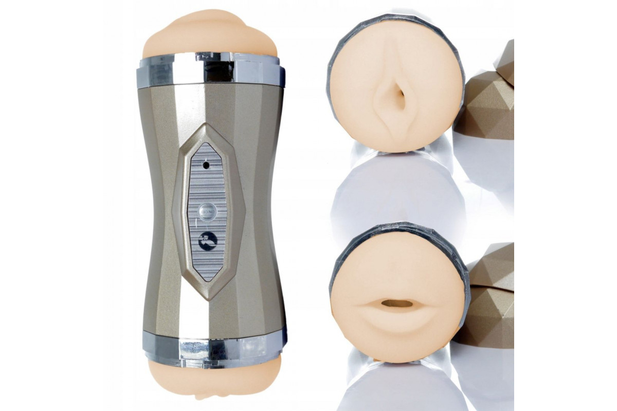 Двусторонний мастурбатор с вибрацией Double Delight - вагина и ротик