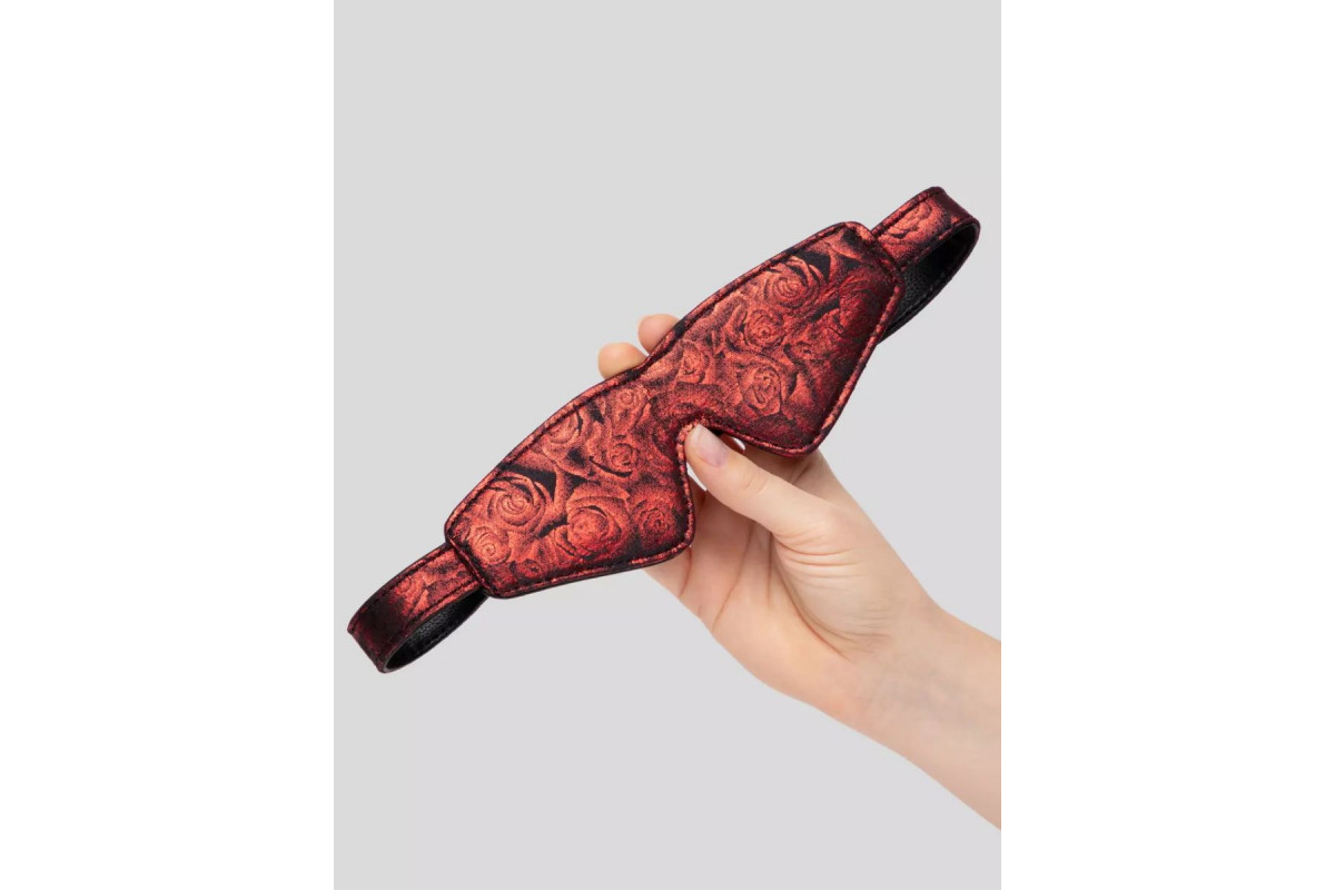 Двусторонняя красно-черная маска на глаза Reversible Faux Leather Blindfold — идеальный аксессуар для взрослых