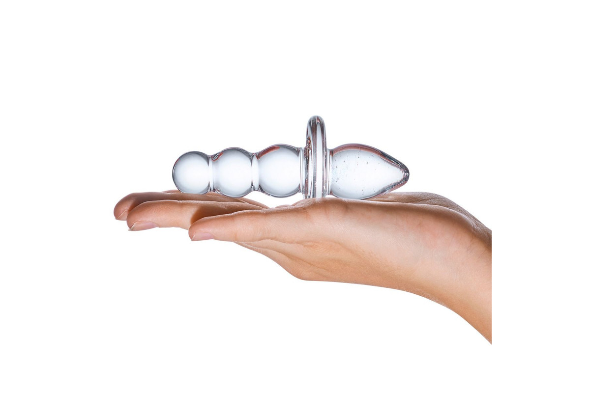 Ощущение гладкости стекла и его кристально прозрачный вид соблазнят тех, кто ищет шикарный предмет для удовольствия. Каждая игрушка в линейке Gl?s подобна произведению искусства, доведенному до совершенства. Эта забавная анальная пробка-ёлочка из прозрачных стеклянных бусин идеально подходит для расширения прямой кишки, одиночной мастурбации и парных игр. Анальная пробка Titus с бусинами имеет два пригодных для использования конца, которые идеально подходят для различных видов стимуляции. На одном конце есть три последовательно увеличивающихся к основанию бусины, позволяющие увеличивать интенсивность ощущений для более глубокой стимуляции. Другой конец украшен переливающейся спиралькой внутри. При этом любой конец работает как ручка для легкого маневрирования. Изготовленная из высокопрочного стекла ручной работы, игрушка рассчитана на длительный срок службы. Она идеально подходит для мужчин и женщин. Ёлочка Titus гипоаллергенна, чрезвычайно гигиенична и проста в уходе, достаточно просто промыть водой с мылом. Нагрейте или охладите эту игрушку в воде нужной температуры, и она сохранит тепло и холод для усиленной стимуляции. Используйте с вашим любимым лубрикантом: эта игрушка совместима с любыми видами интимных средств. Длина ёлочки - 5,5 см, минимальный диаметр - 1,9 см, максимальный - 2,4 см.
