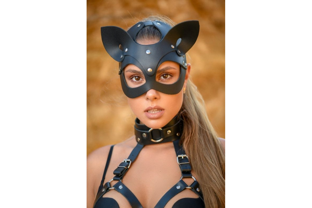 Эффектная кожаная маска кошки с ушками — подчеркните свою индивидуальность