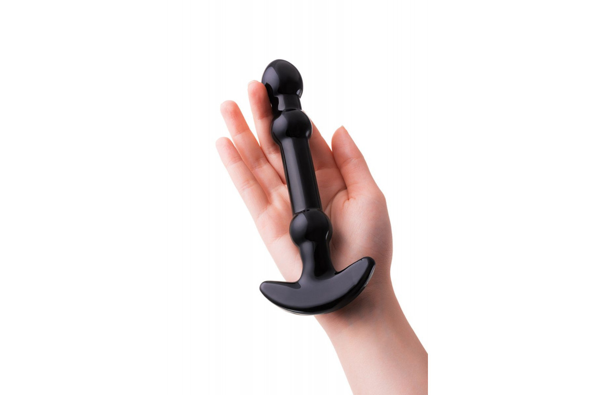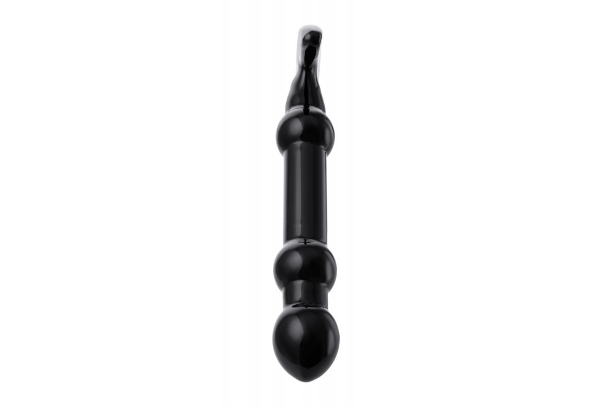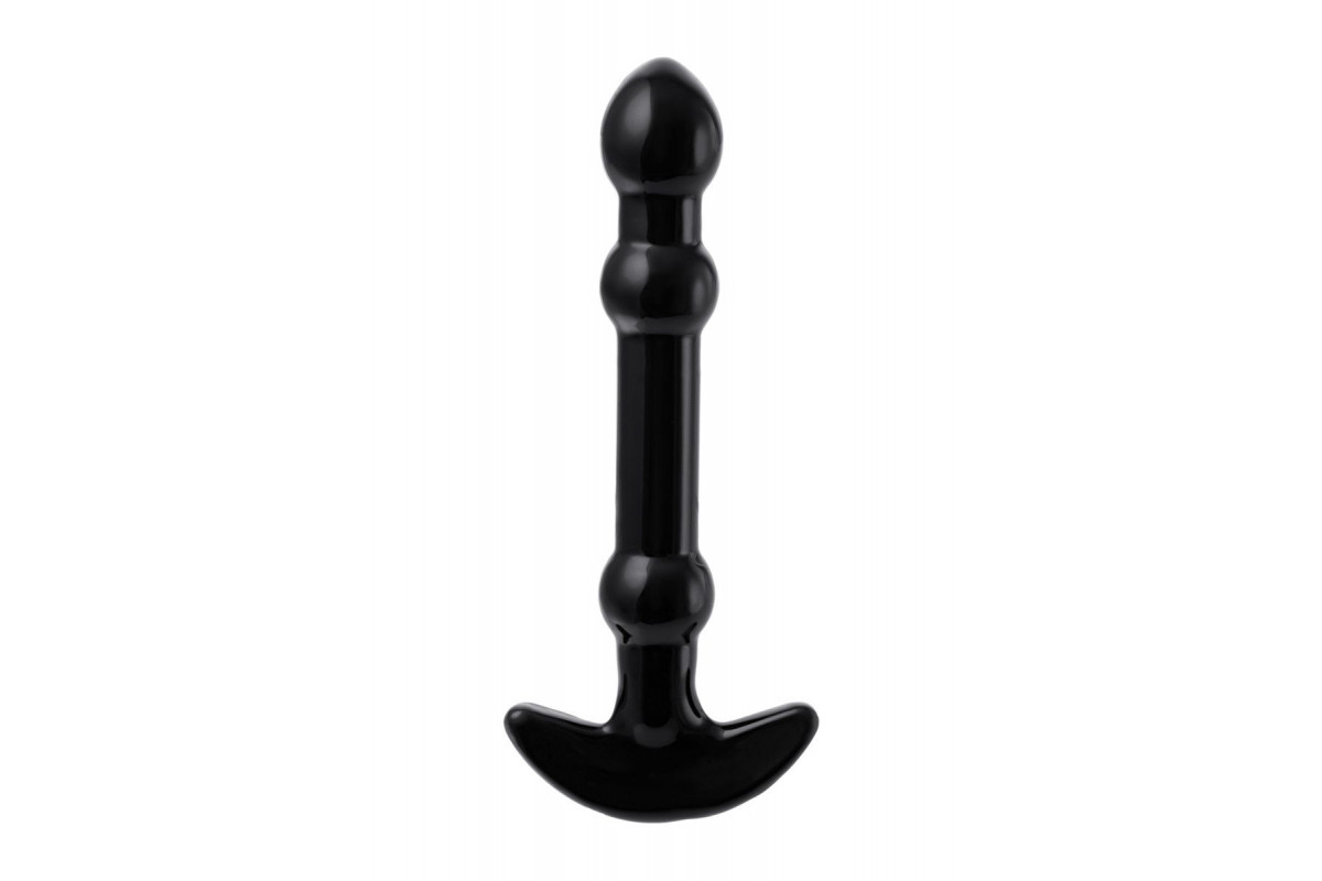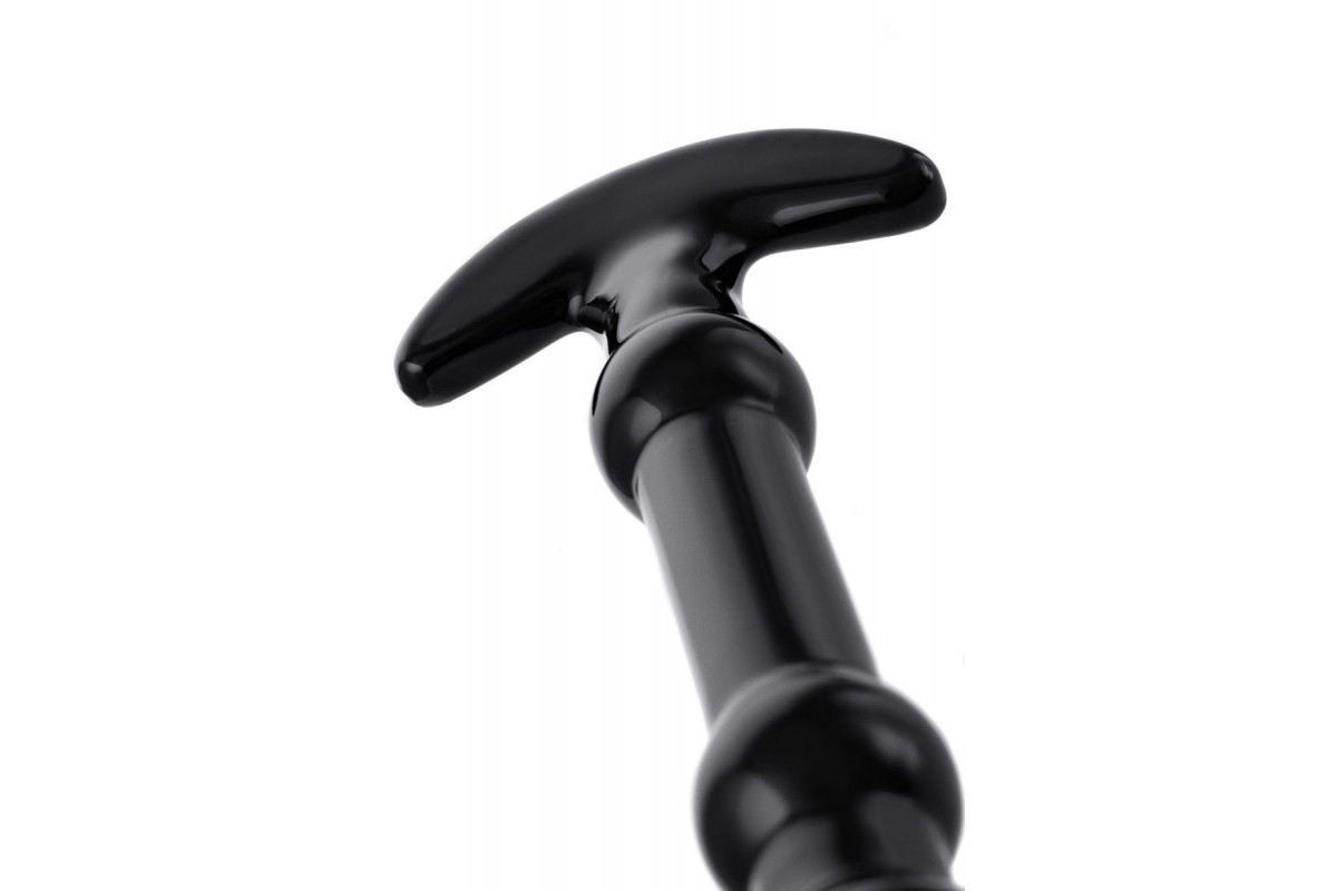 Элегантный чёрный анальный стимулятор с шариками на стволе - 19 см.