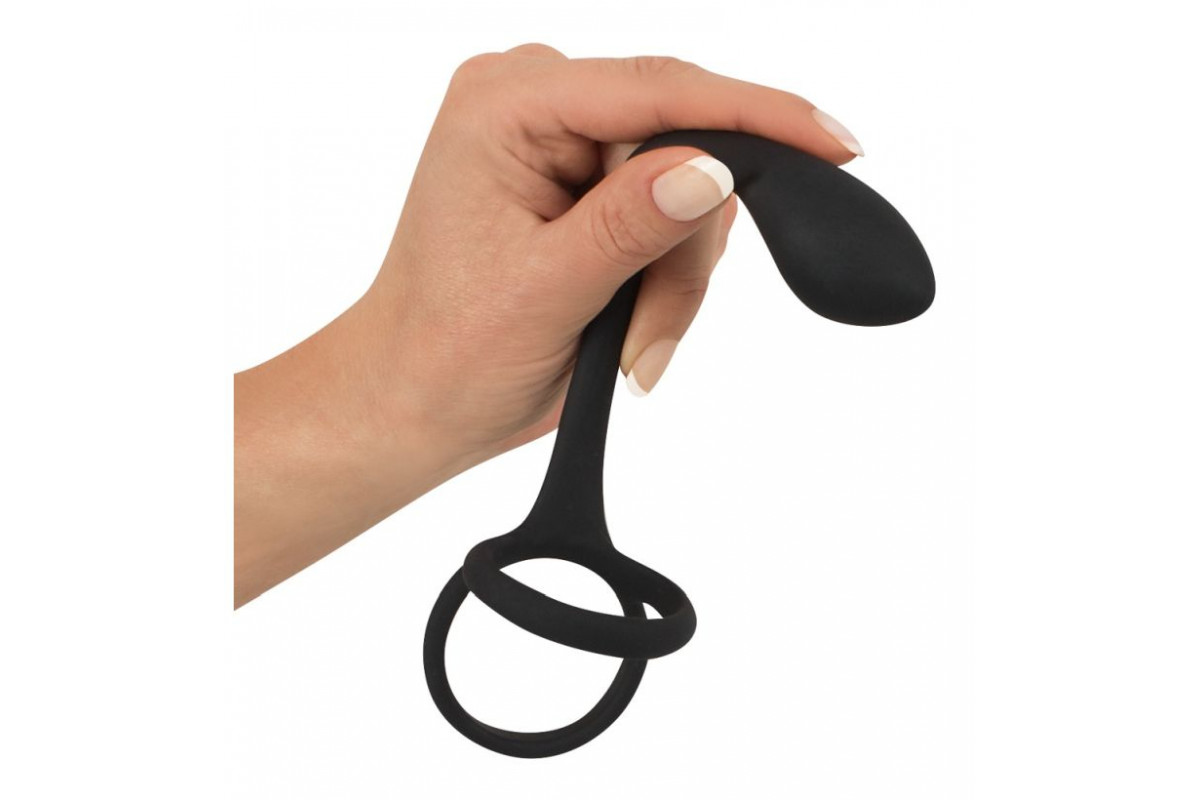 Эрекционное кольцо с утяжкой на мошонку и анальным плаг Black Velvets