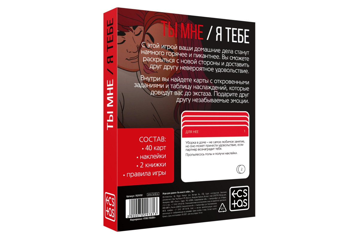 Подарите себе и своему партнеру незабываемые эмоции и откройте новые горизонты страсти с игрой «Ты мне/я тебе»! Пусть каждый вечер станет особенным и наполненным искренним желанием и любовью.