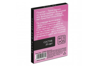 Эротические фанты Kiss Me — это набор забавных и возбуждающих заданий, специально разработанных для взрослых. Они помогают раскрыть фантазии, усилить романтику и сделать каждый вечер особенным. Каждая карта содержит уникальное задание или поцелуй, которые сделают ваши близкие моменты еще более яркими и насыщенными.