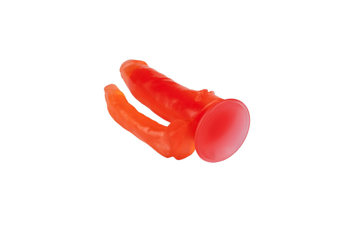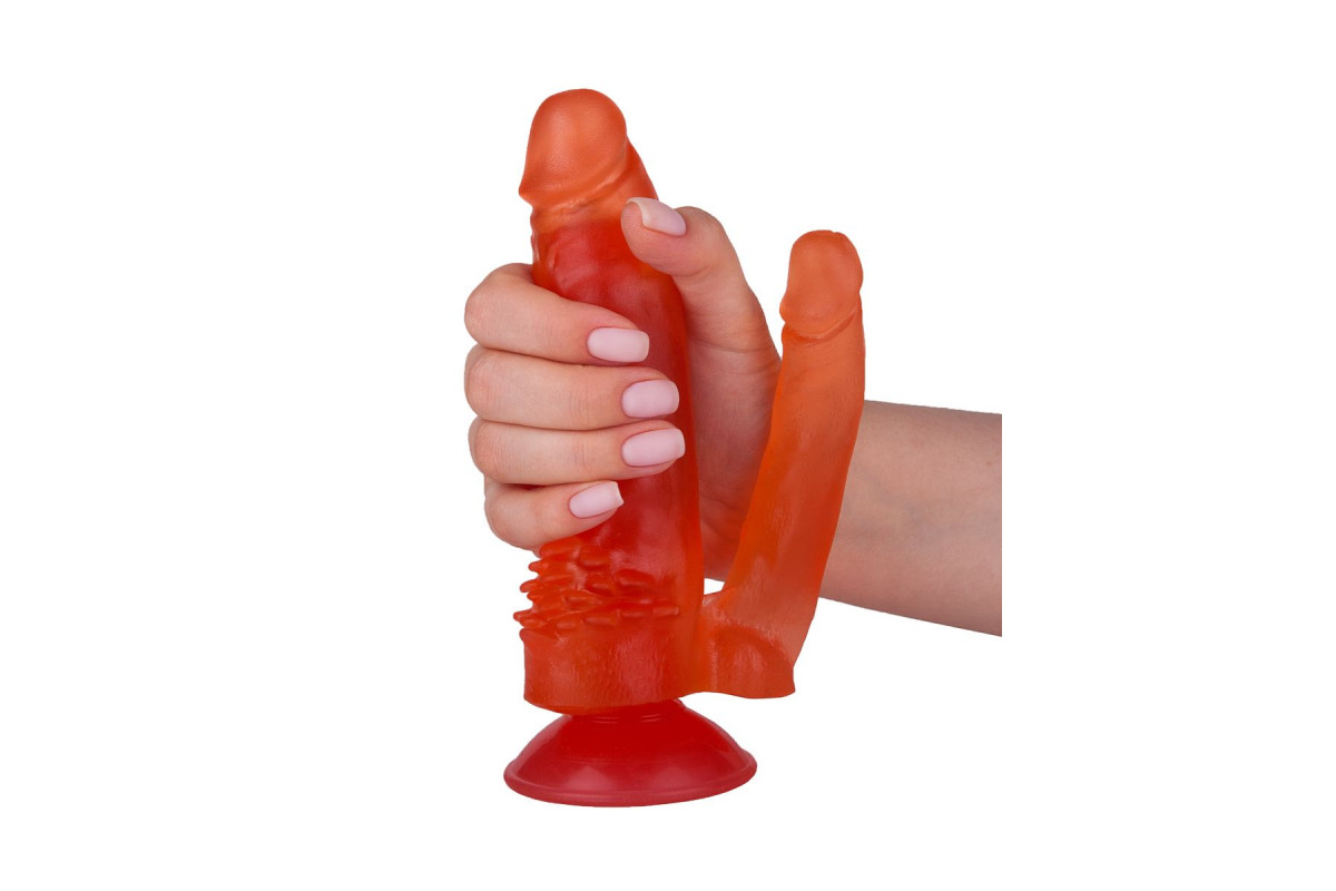 Гладкие, упругие отростки с рельефом в виде складочек и венок будут одновременно погружаться в вагину и анус, заставляя вас дрожать от желания. Присоска на основании поможет зафиксировать дилдо на тумбе, стуле или полу, что значительно расширит количество позиций для самоудовлетворения. Длина анального фаллоса - 12 см.