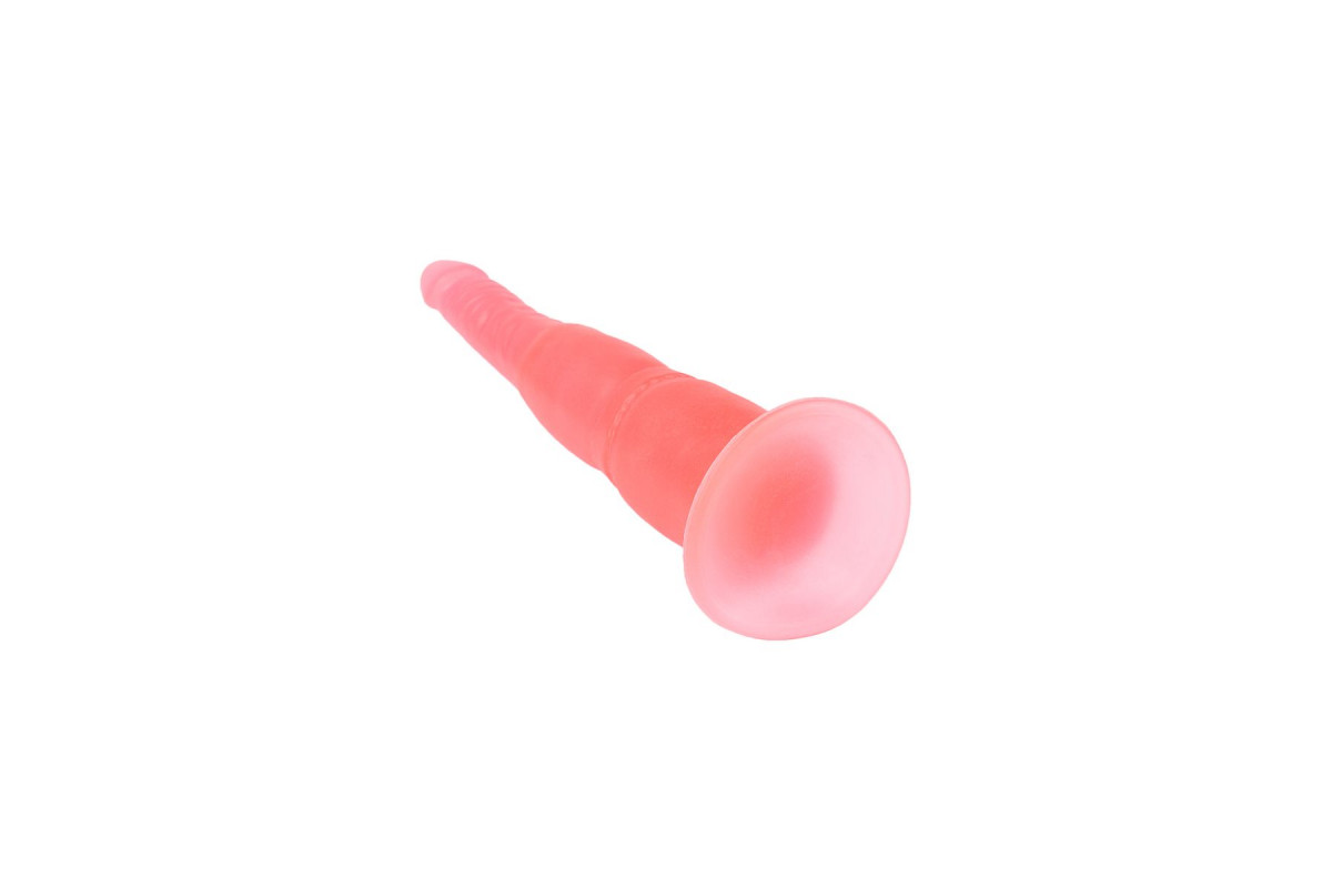 Этот тоненький фаллос из розового геля выглядит абсолютно реалистично: ярко выраженная головка, слегка вытянутая кверху, и легкий рельеф в виде складочек имитируют формы настоящего пениса.