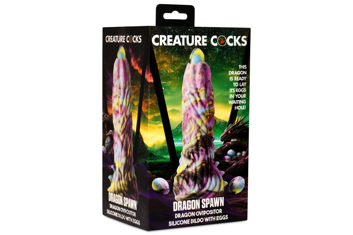 Фантазийный фаллоимитатор Dragon Spawn Ovipositor имеет уникальную текстуру завитков, гребней, канавок и шипов, которые отправят вас в мир наслаждения! Полый центр достаточно широк, чтобы 3 силиконовых яйца могли проскользнуть и оплодотворить вас! Изготовлен из высококачественного силикона без фталатов, имеет прочную сердцевину и мягкую шелковистую поверхность. Исследуйте каждую научно-фантастическую, фэнтезийную, ролевую или косплей-сцену, которую вы хотите, с этой эпической взрослой игрушкой! Рабочая длина - 15,2 см.