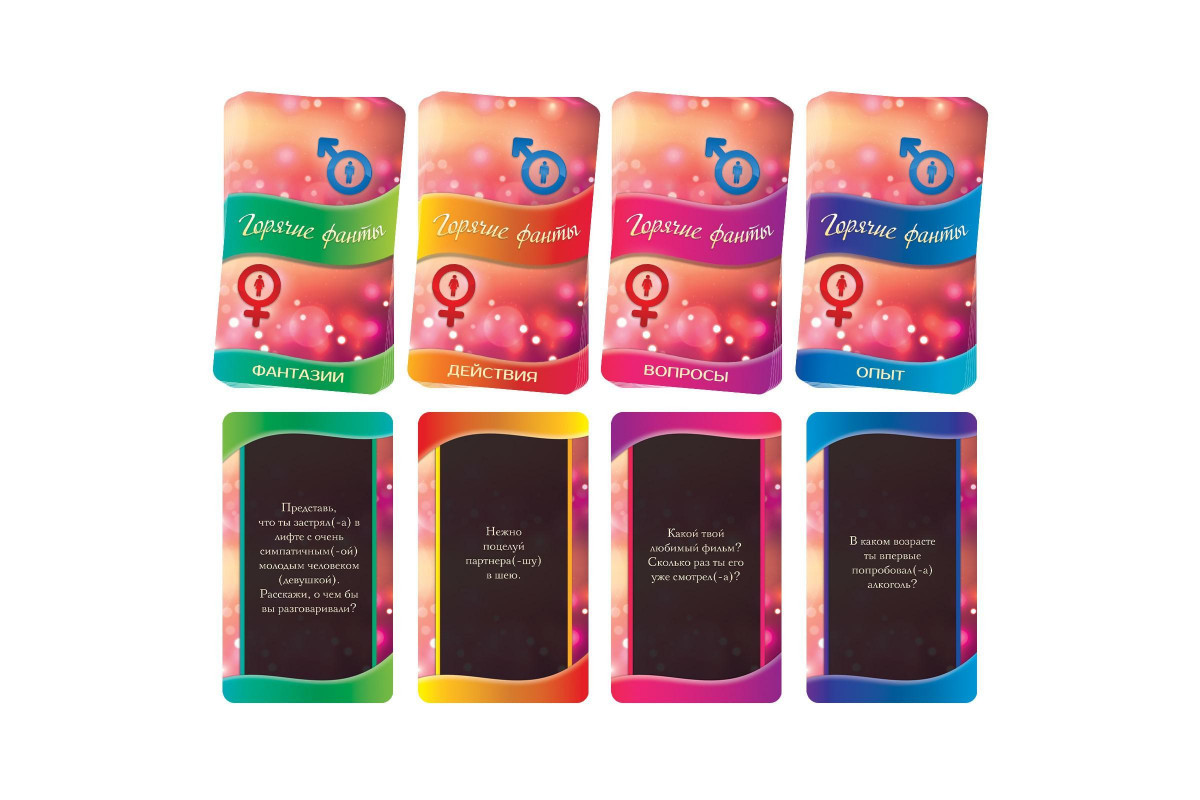 Комплект включает в себя тщательно разработанные карточки с заданиями и вопросами, которые помогут вам сделать ваш вечер более насыщенным и увлекательным. Каждая карточка — это шанс открыть что-то новое о своем партнере и сделать ваши отношения еще крепче.
