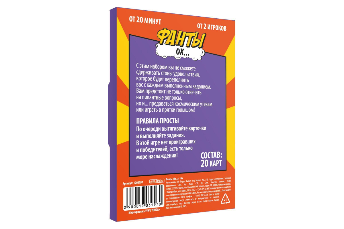 Обеспечьте себе и своим друзьям незабываемое развлечение – приобретайте фанты Ох... в нашем магазине и готовьтесь к ярким эмоциям и веселым приключениям! Не упустите шанс сделать ваши вечера по-настоящему особенными.