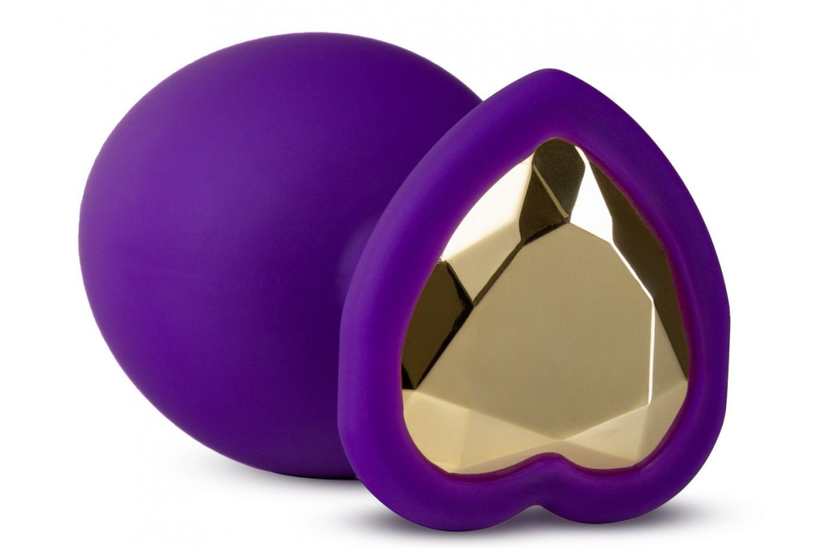 Фиолетовая анальная пробка Bling Plug Medium с золотистым стразом — элегантное удовольствие