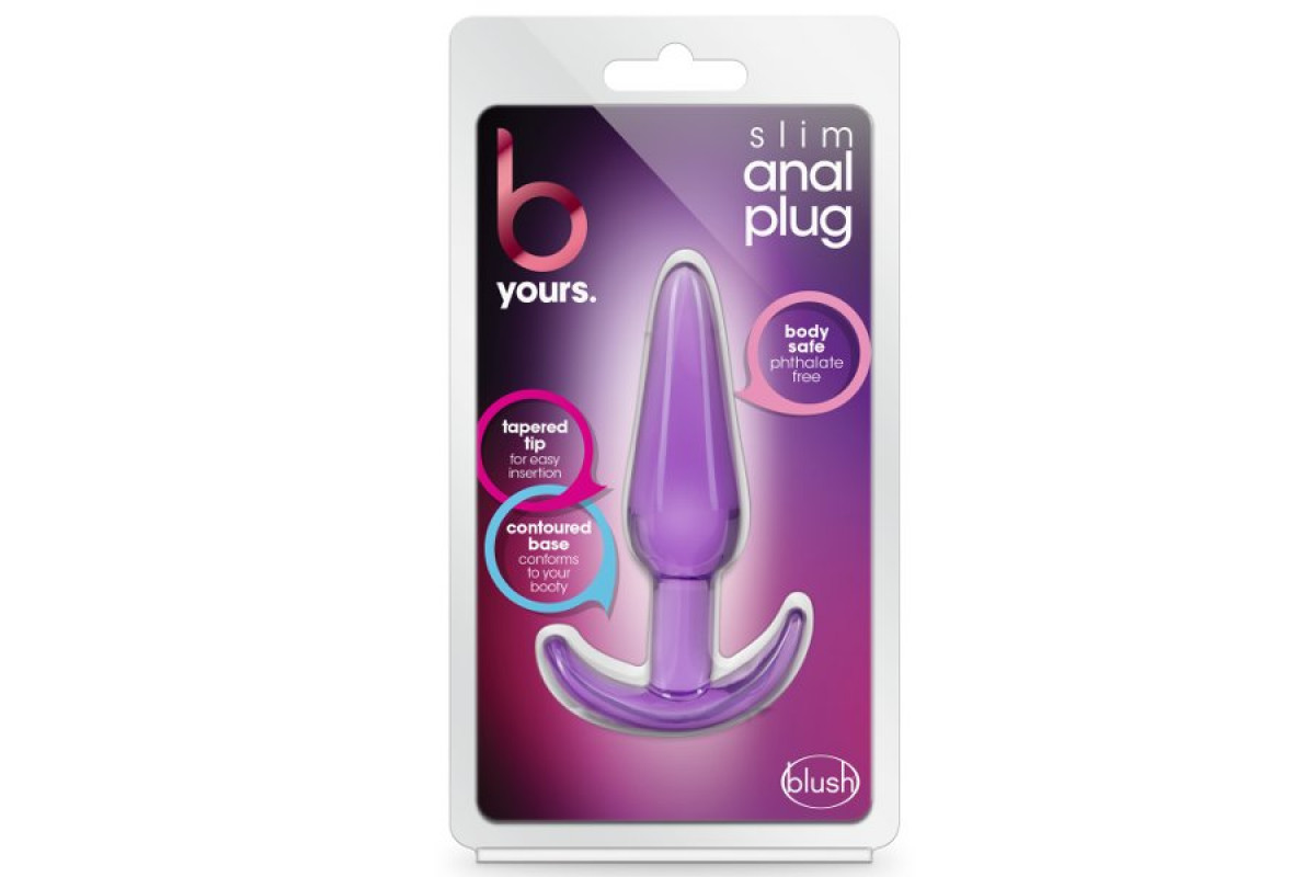 Фиолетовая анальная пробка в форме якоря Slim Anal Plug. Широкое ограничительное основание. Подходит для ношения. Рабочая длина - 8,2 см.