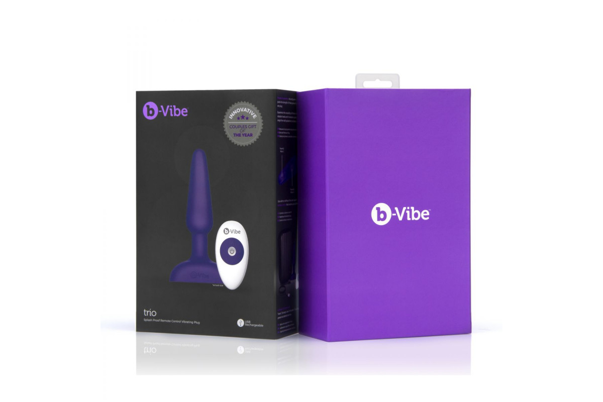 Фиолетовая анальная вибропробка с 3 источниками вибрации TRIO REMOTE CONTROL PLUG PURPLE - 13,5 см.