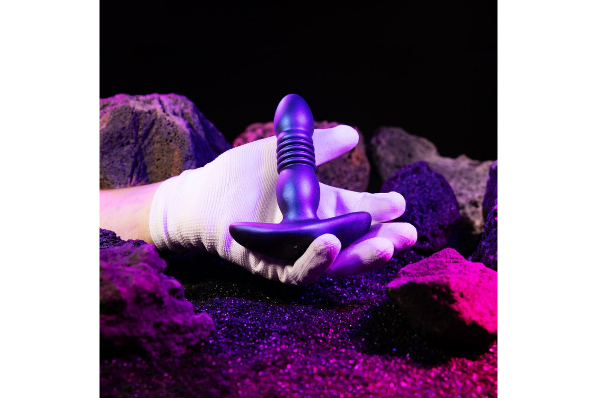 Фиолетовая анальная вибропробка с поступательными движениями Supernova