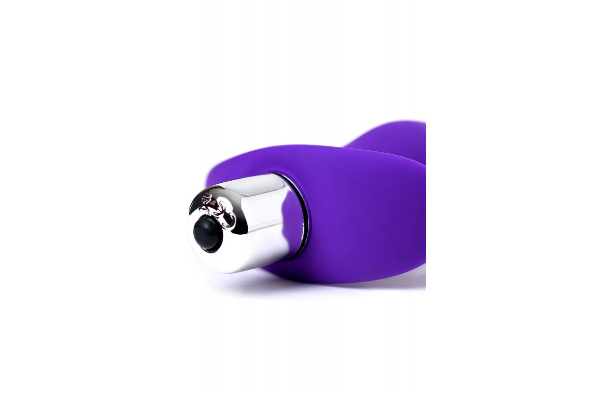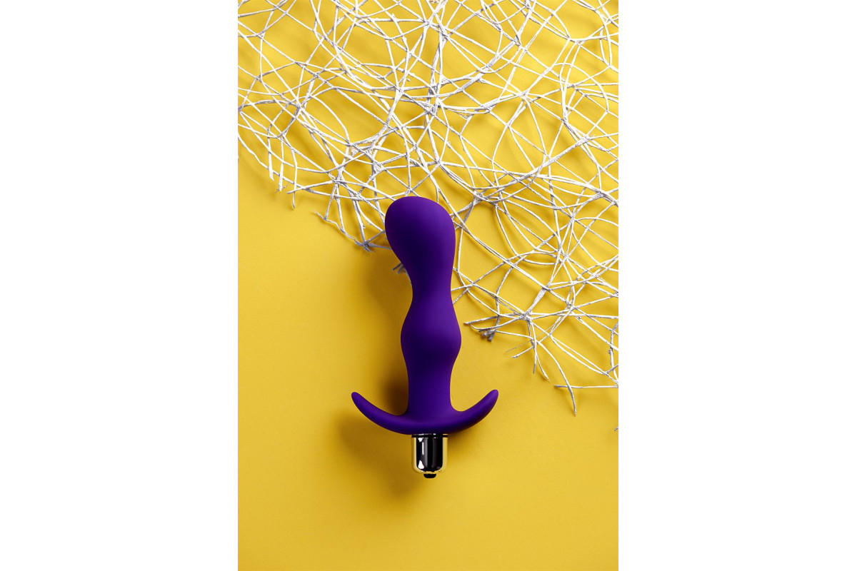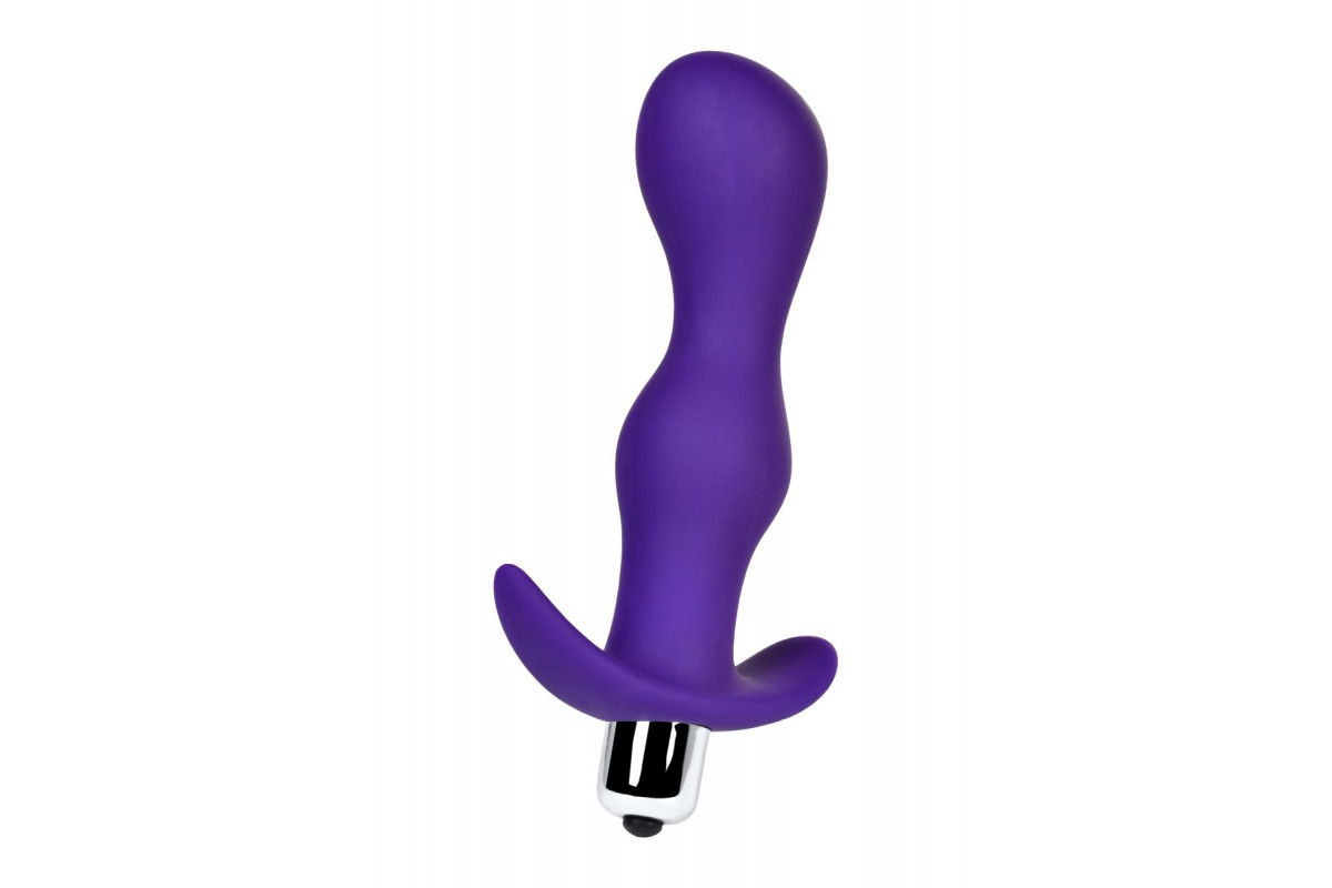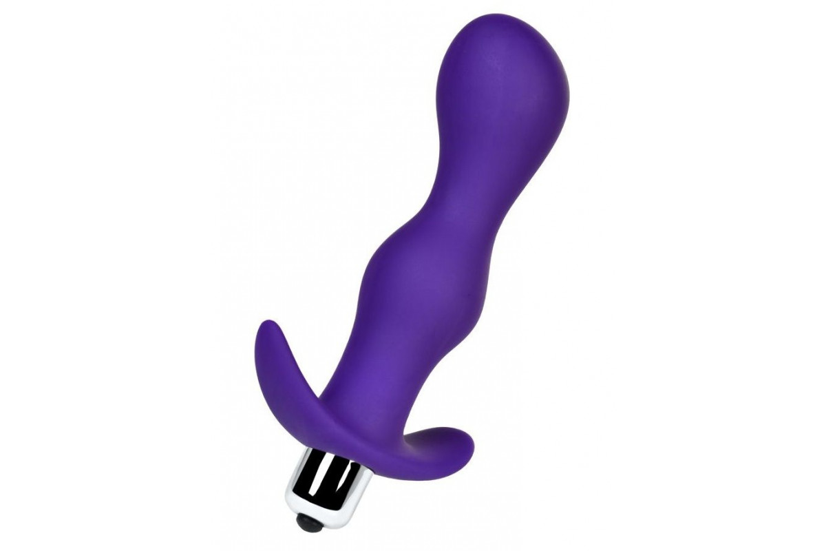 Фиолетовая изогнутая анальная вибропробка - 14 см.