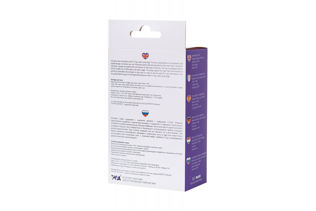 Откройте новые ощущения с анальной пробкой c вибрацией A-Toys! Игрушка представлена в удобном и практичном дизайне, а ощущения от введения такой втулки отличаются особой деликатностью. Мощная вибрация легко включается одной кнопкой в основании игрушки. Для комфортного и безопасного использования, пробка оснащена ручкой-ограничителем. Плаг отлично подходит как для мужчин, так и для женщин. Эта пробка прекрасно разнообразит прелюдию к анальному сексу в паре или может быть использована для стимуляции соло. С анальной вибро пробкой A-Toys незабываемое удовольствие вам гарантировано! Рабочая длина -11 см.