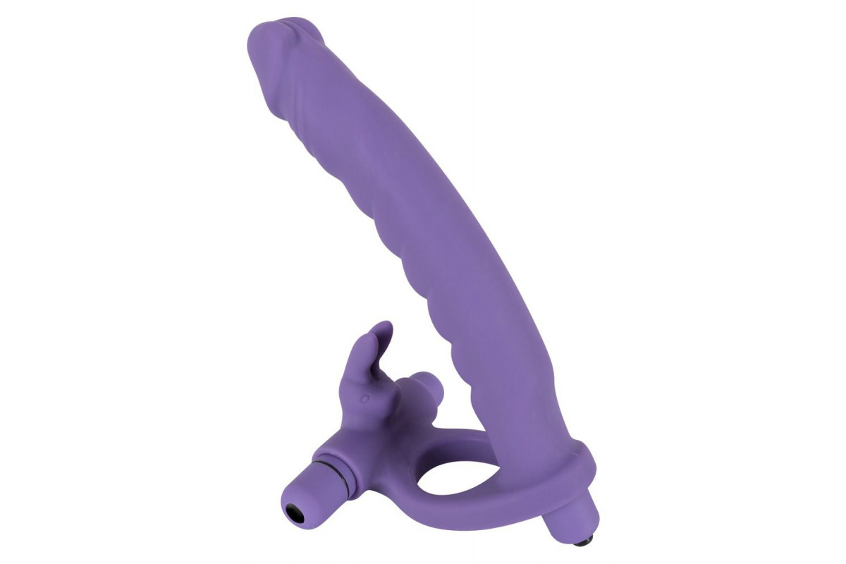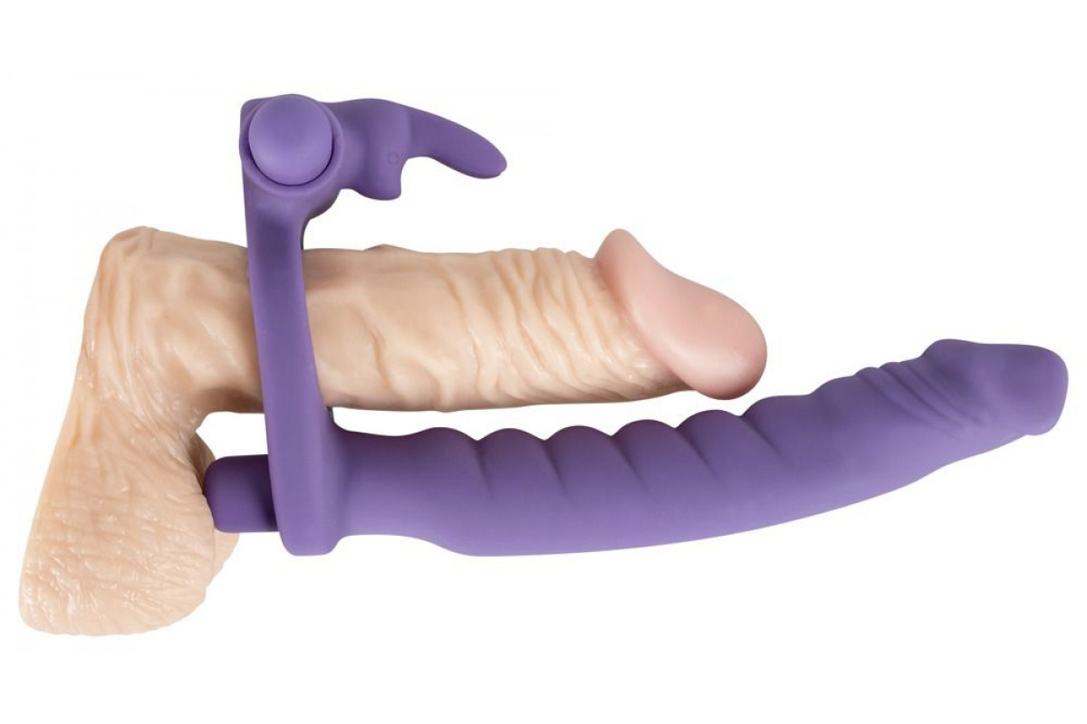 Фиолетовая насадка на пенис для двойной стимуляции Los Analos - 16 см.