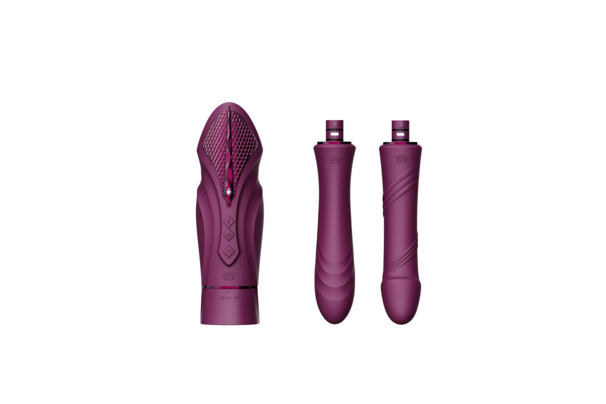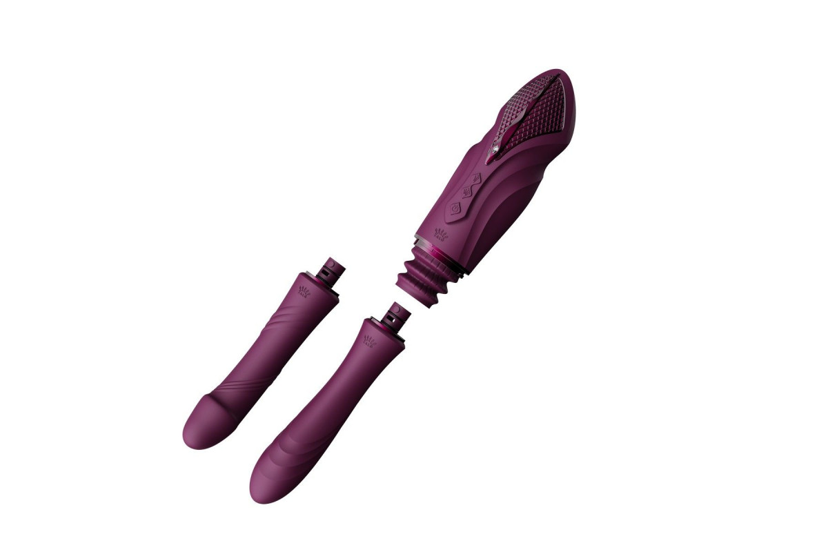 Фиолетовая секс-машина с функцией нагрева, насадками и присоской Sesh