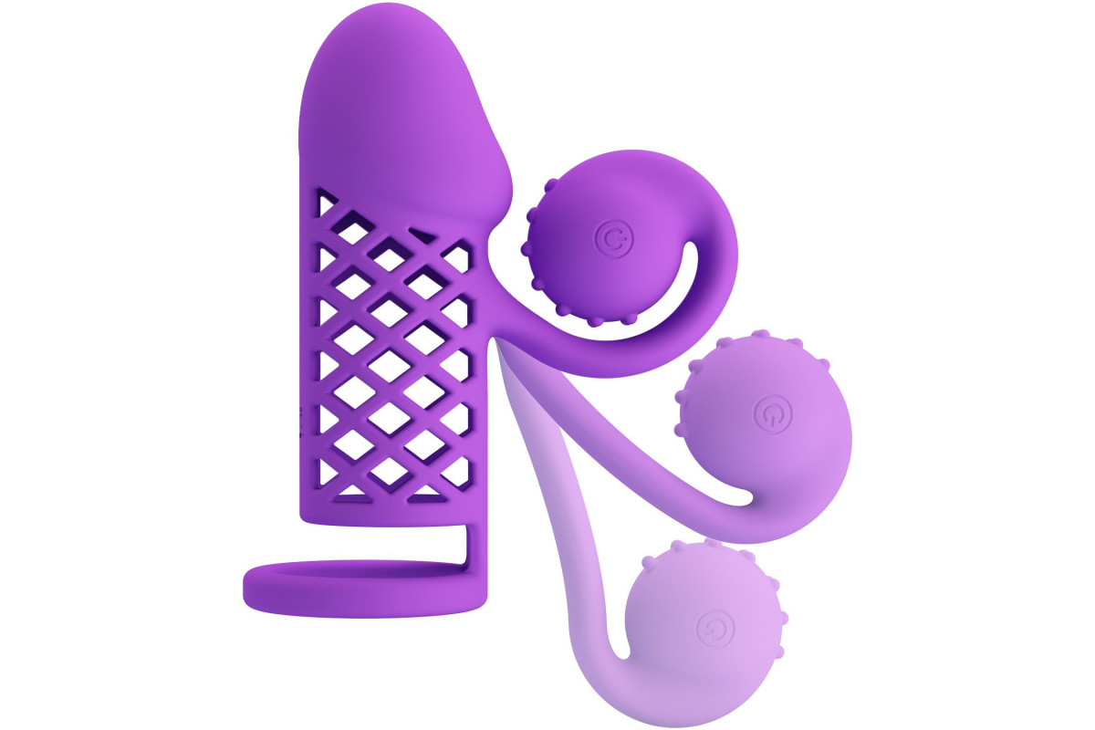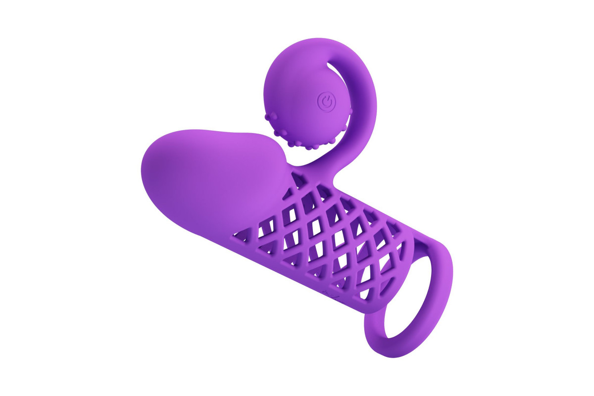 Фиолетовая вибронасадка с клиторальным отростком Harden – новый уровень удовольствия