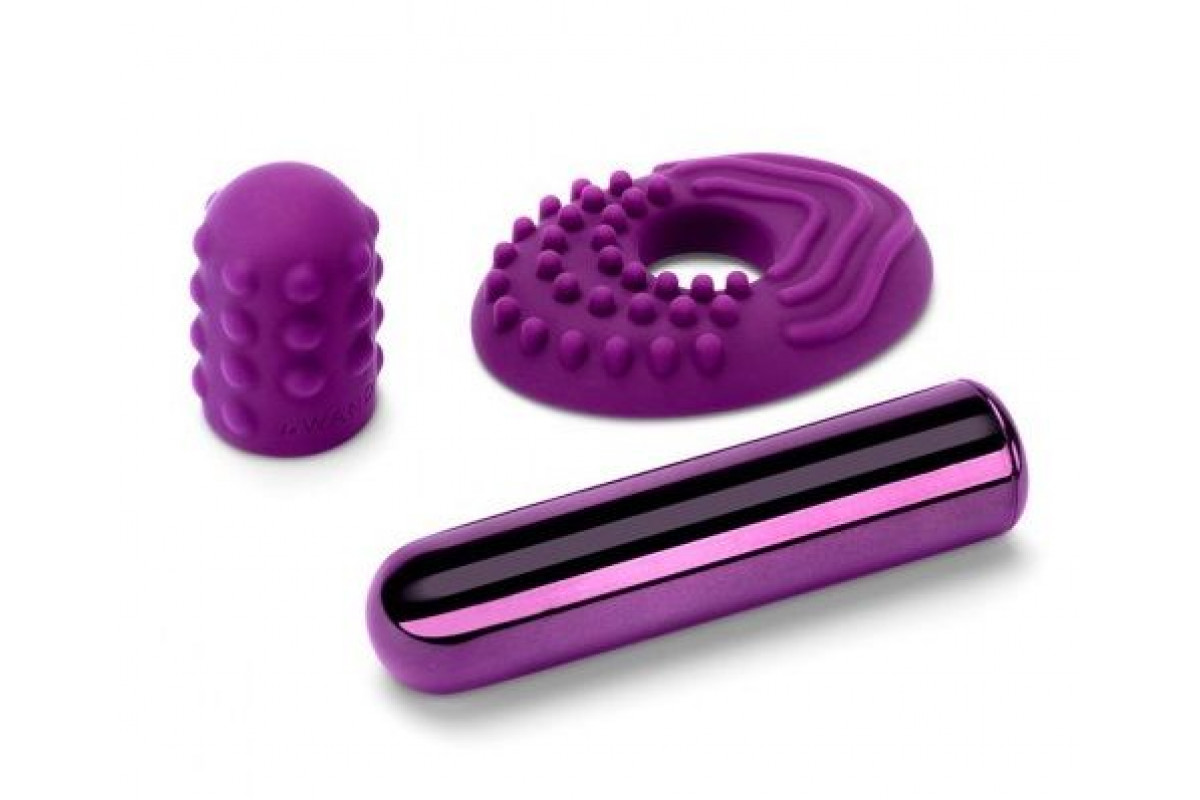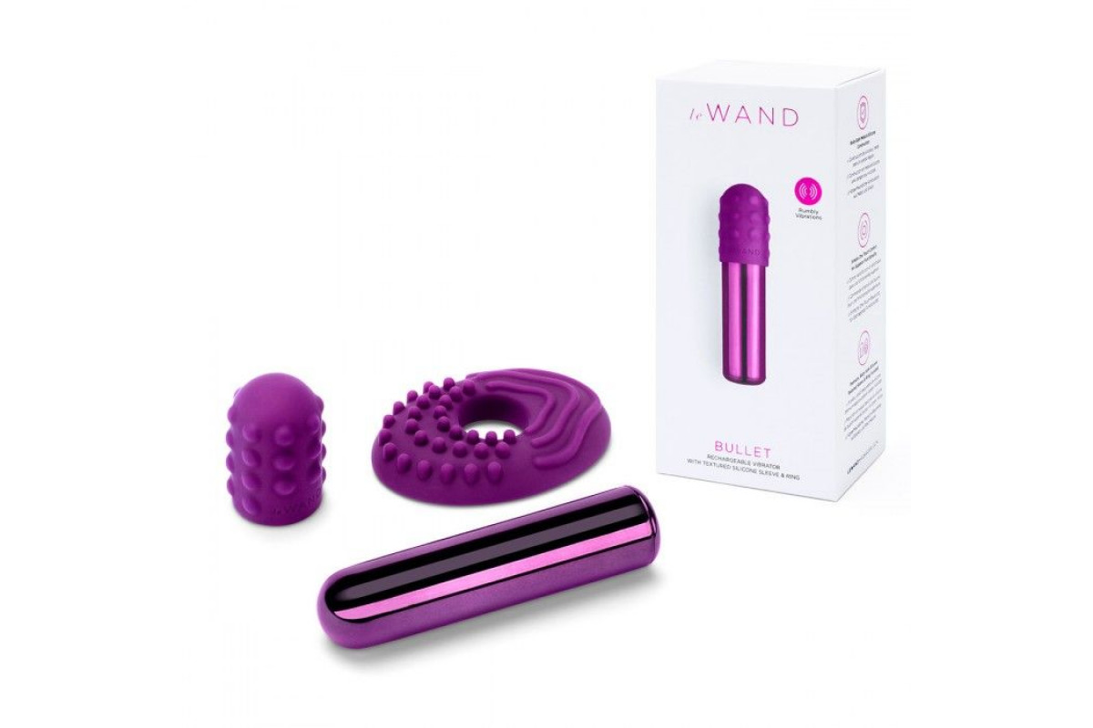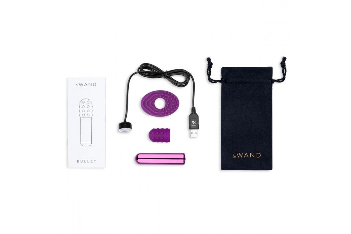 Фиолетовая вибропулька Le Wand Bullet с 2 нежными насадками