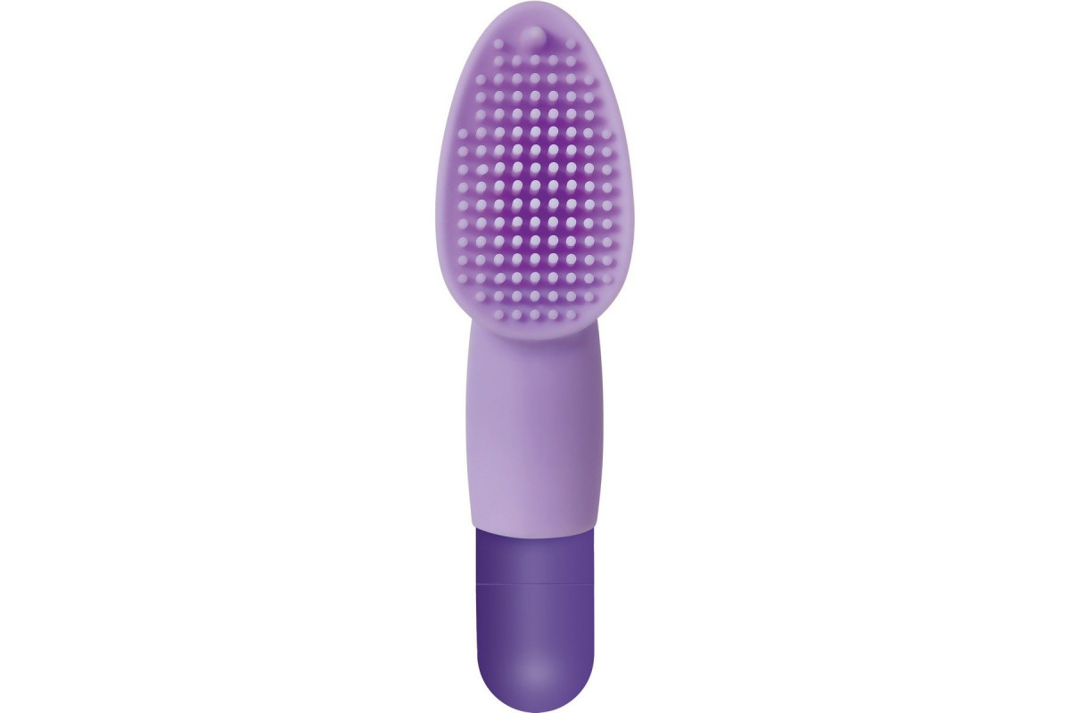 Фиолетовая вибропуля с силиконовой щеточкой для клиторальной стимуляции Fingerific