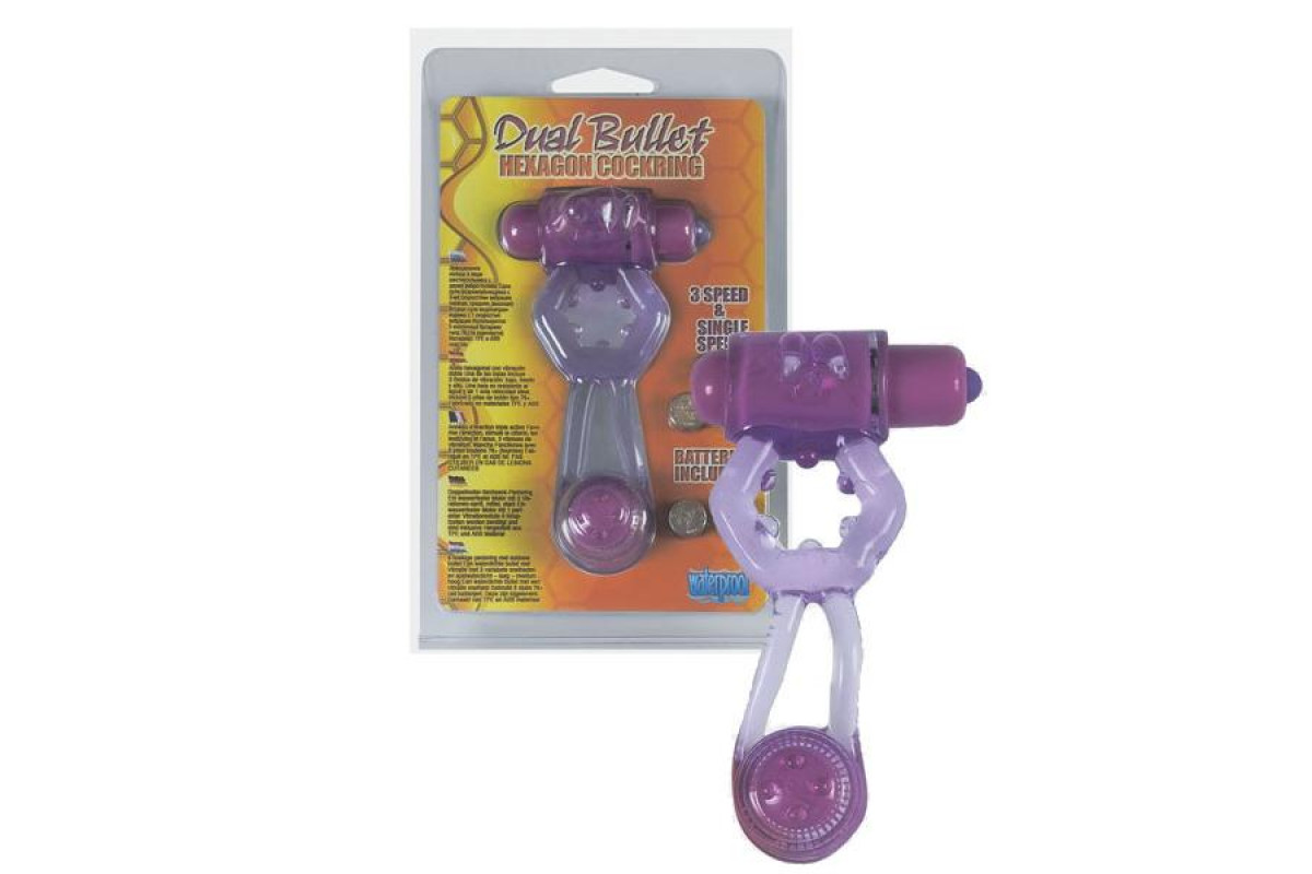 Фиолетовое эрекционное кольцо Dual Bullet Hexagon Cockring — усиление ощущений и максимальное удовольствие