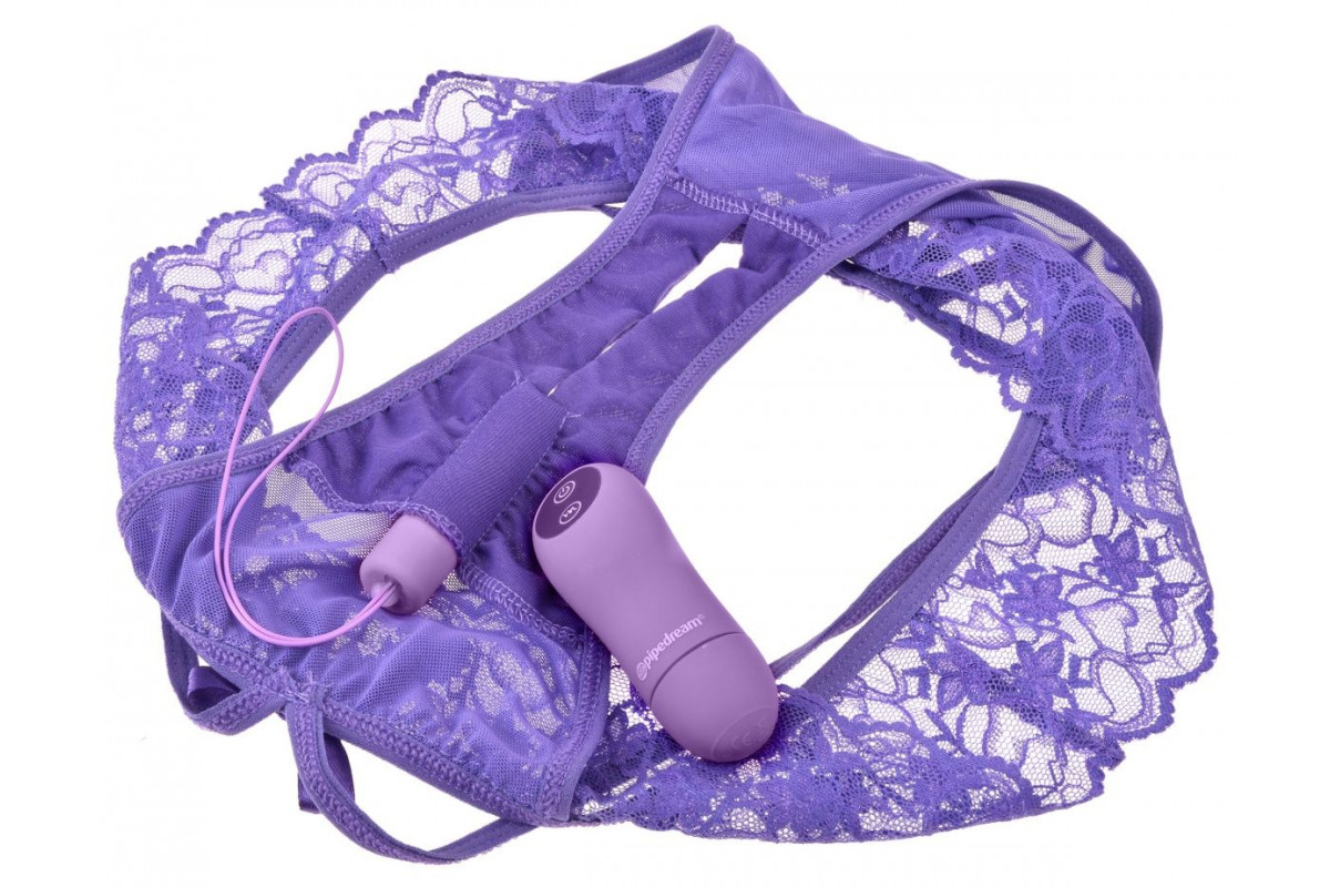 Фиолетовые трусики с вибропулей и пультом Crotchless Panty Thrill-Her: воплощение тайного наслаждения