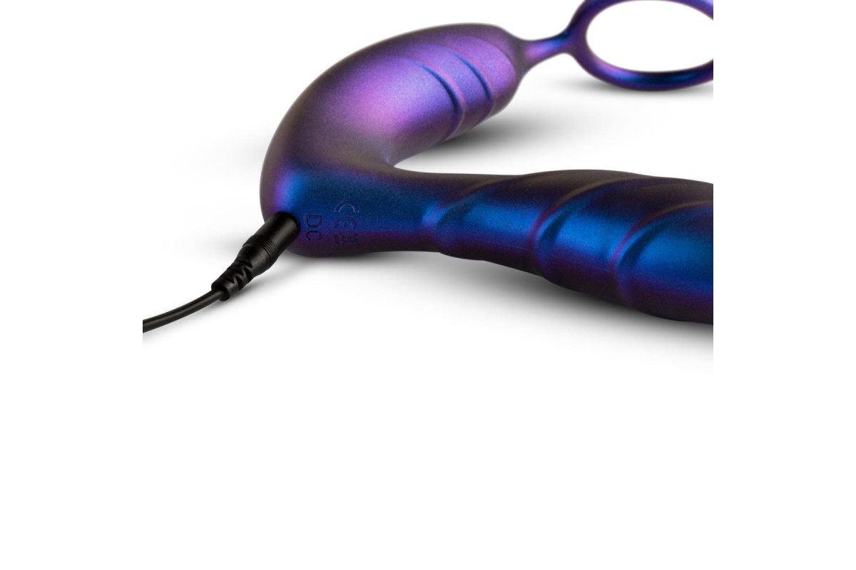 Фиолетовый анальный вибратор с эрекционным кольцом Black Hole - 14,3 см.