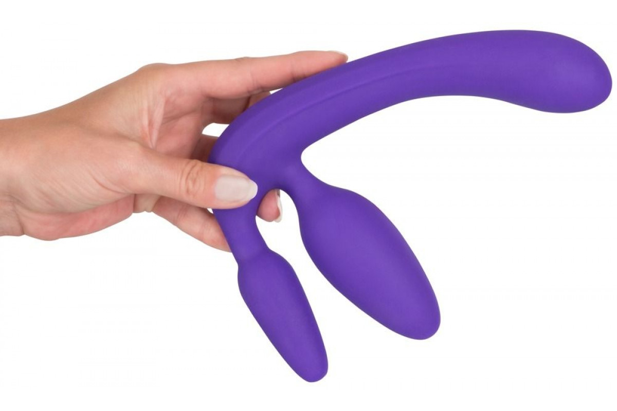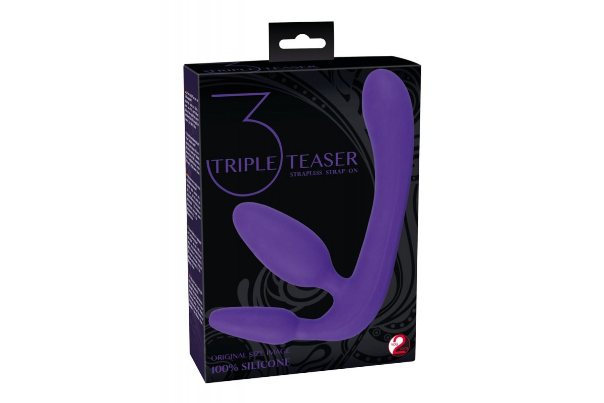 Фиолетовый безремневой страпон с двумя пробками Triple Teaser — откройте новые горизонты удовольствия