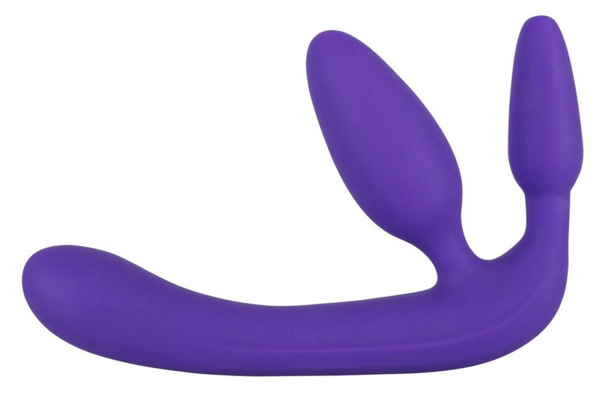 Фиолетовый безремневой страпон с двумя пробками Triple Teaser