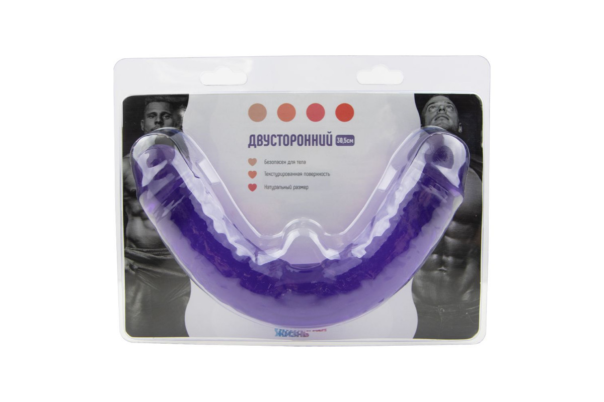 Фиолетовый двусторонний фаллоимитатор - 30,5 см.