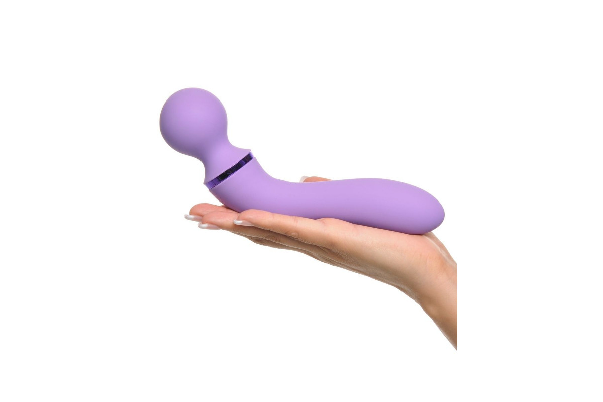 Фиолетовый двусторонний вибростимулятор Duo Wand Massage-Her - 19,6 см.