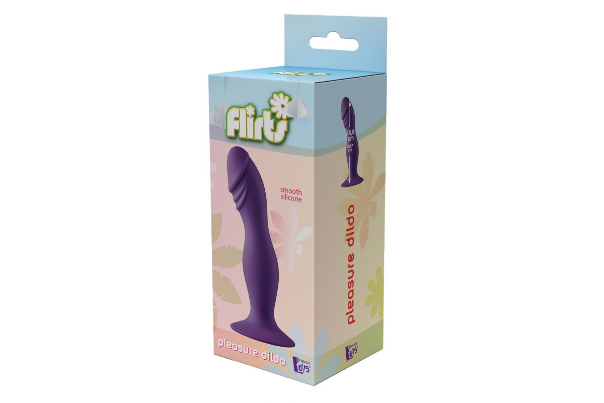 Flirts — это коллекция игрушек Dream Toys, которая отличается яркими цветами и упаковкой, напоминающей о весне, голубом небе, солнечных днях и цветах. Этот дилдо изготовлен из гладкого фиолетового силикона и имеет кончик в форме головки. Благодаря изогнутой форме он легко достигает точки P у мужчин. Дилдо оснащен присоской для использования без помощи рук.