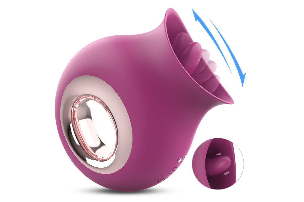 Фиолетовый клиторальный вибромассажёр с подвижным язычком — удовольствие нового уровня
