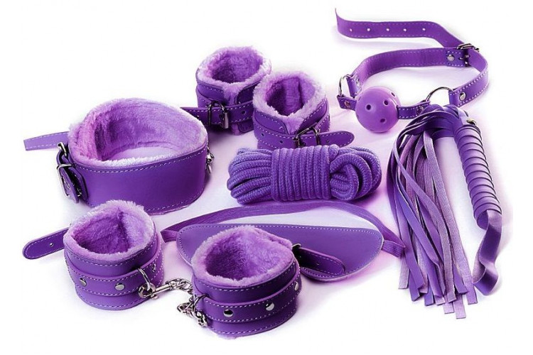 Фиолетовый набор БДСМ «Накажи меня нежно» с карточками