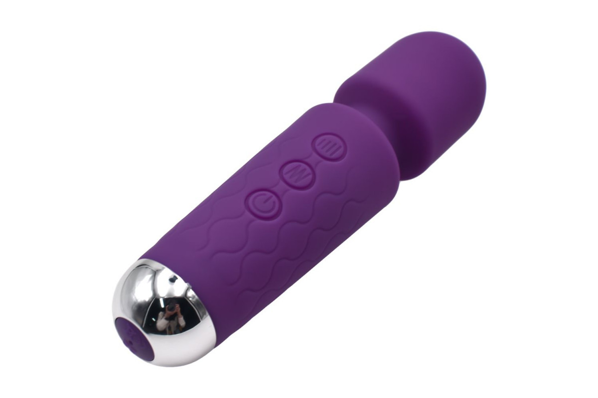 Фиолетовый перезаряжаемый мини-wand вибратор — компактное удовольствие для взрослых