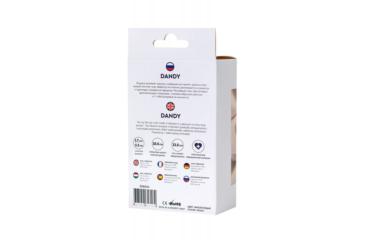 Фиолетовый силиконовый анальный вибратор Dandy - 13,5 см.