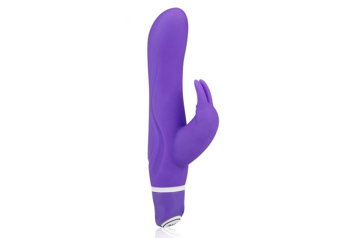 Фиолетовый силиконовый вибратор со стимулятором клитора – 21 см