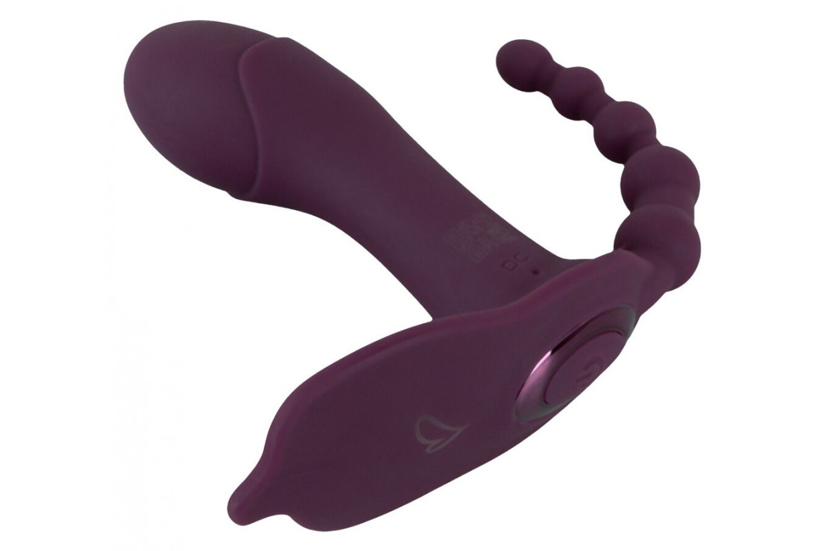 Изготовленный из тончайшего силикона шелковистый стержень с пухлой головкой легко вводится. Мягкая ворсистая подушечка ласкает клитор. Гибкий стимулятор в виде пули разного диаметра ублажает анальную зону. Вибратор в трусиках гибко подстраивается под тело и повторяет каждое движение. Это означает, что тройная вибрация всегда ощущается интенсивно - как внутри, так и снаружи. Тройное удовольствие, которое можно получить везде! Длина вагинального отростка - 10 см, диаметр - 3,2 см.