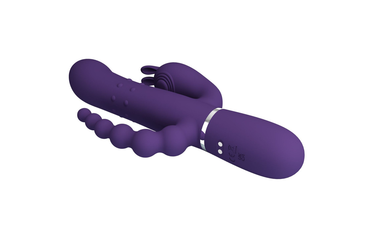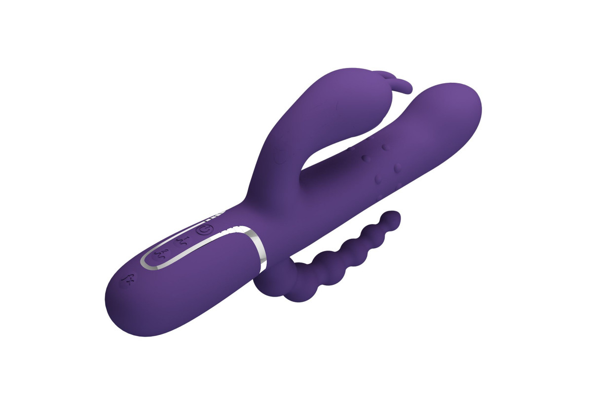 Фиолетовый вибратор для тройной стимуляции Cammy — 22,2 см