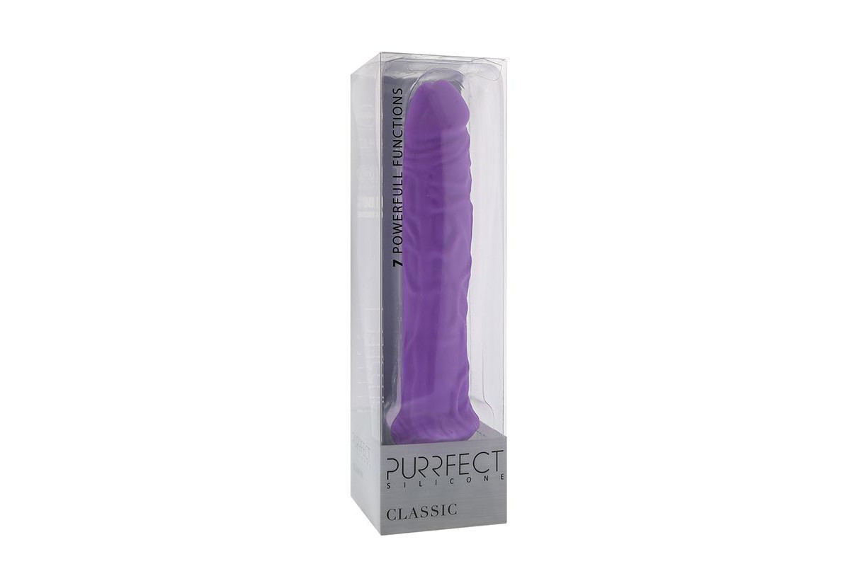 Фиолетовый вибратор-реалистик PURRFECT SILICONE CLASSIC 8.5INCH — воплощение ощущений и удовольствия