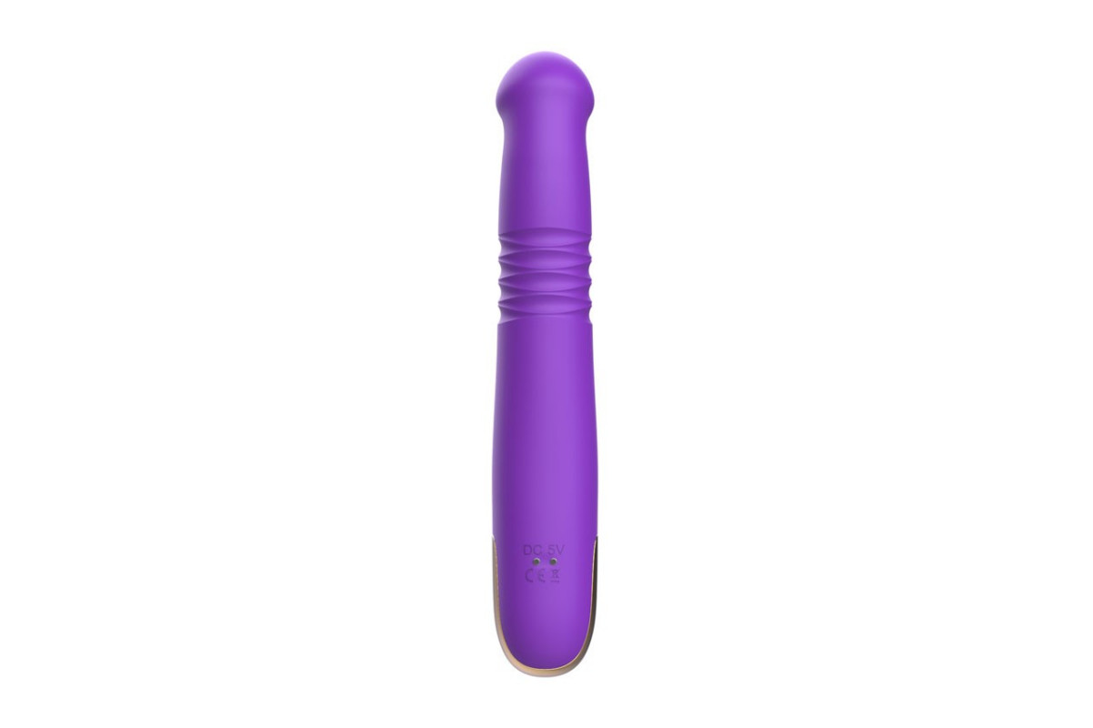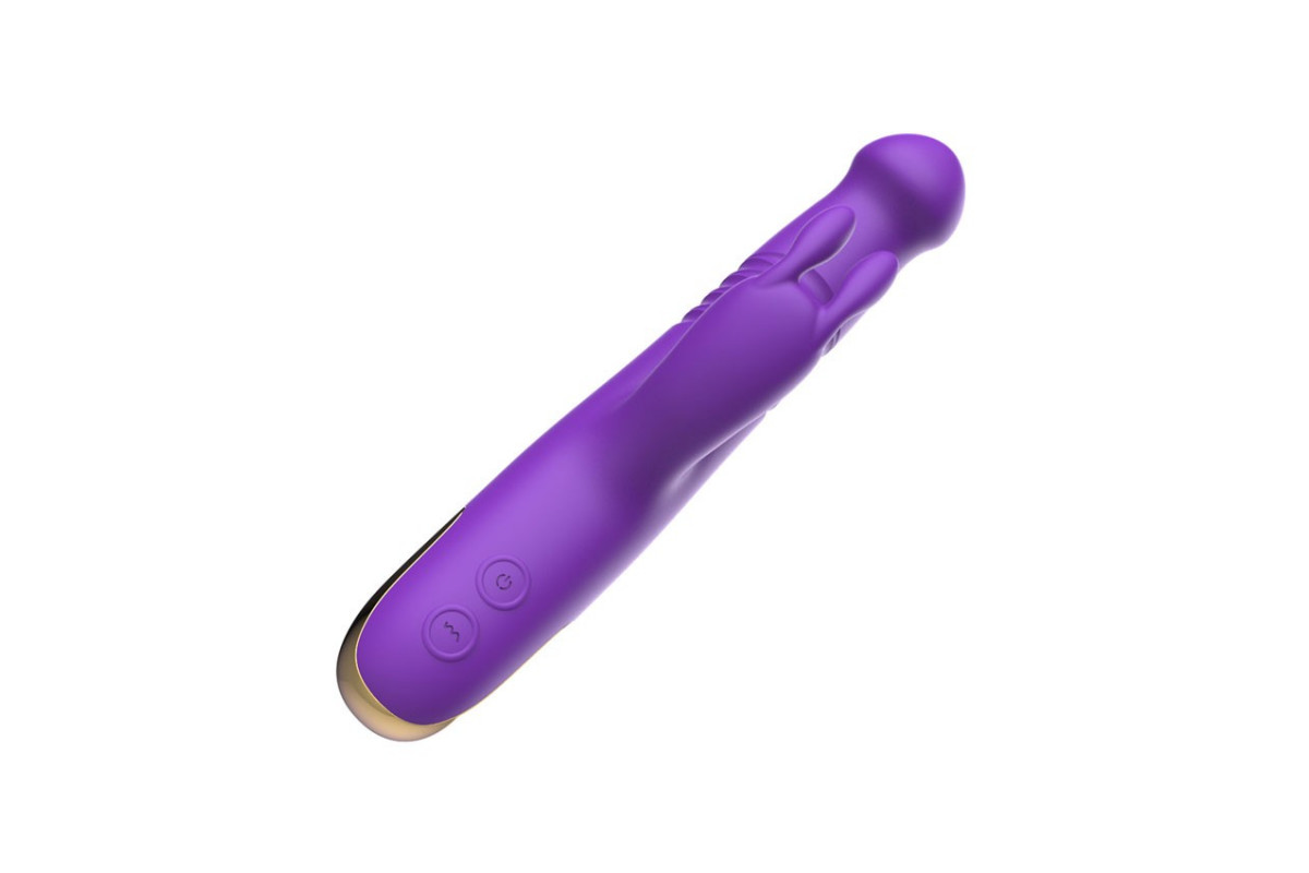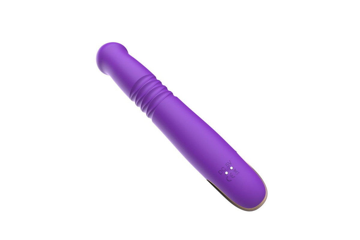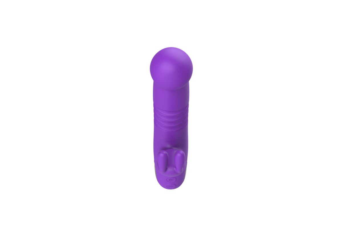 Фиолетовый вибратор-ротатор со стимулятором клитора и возвратно-поступательными движениями
