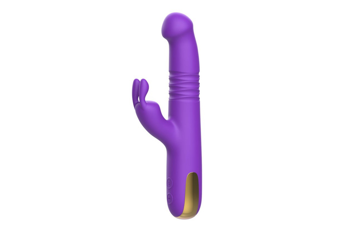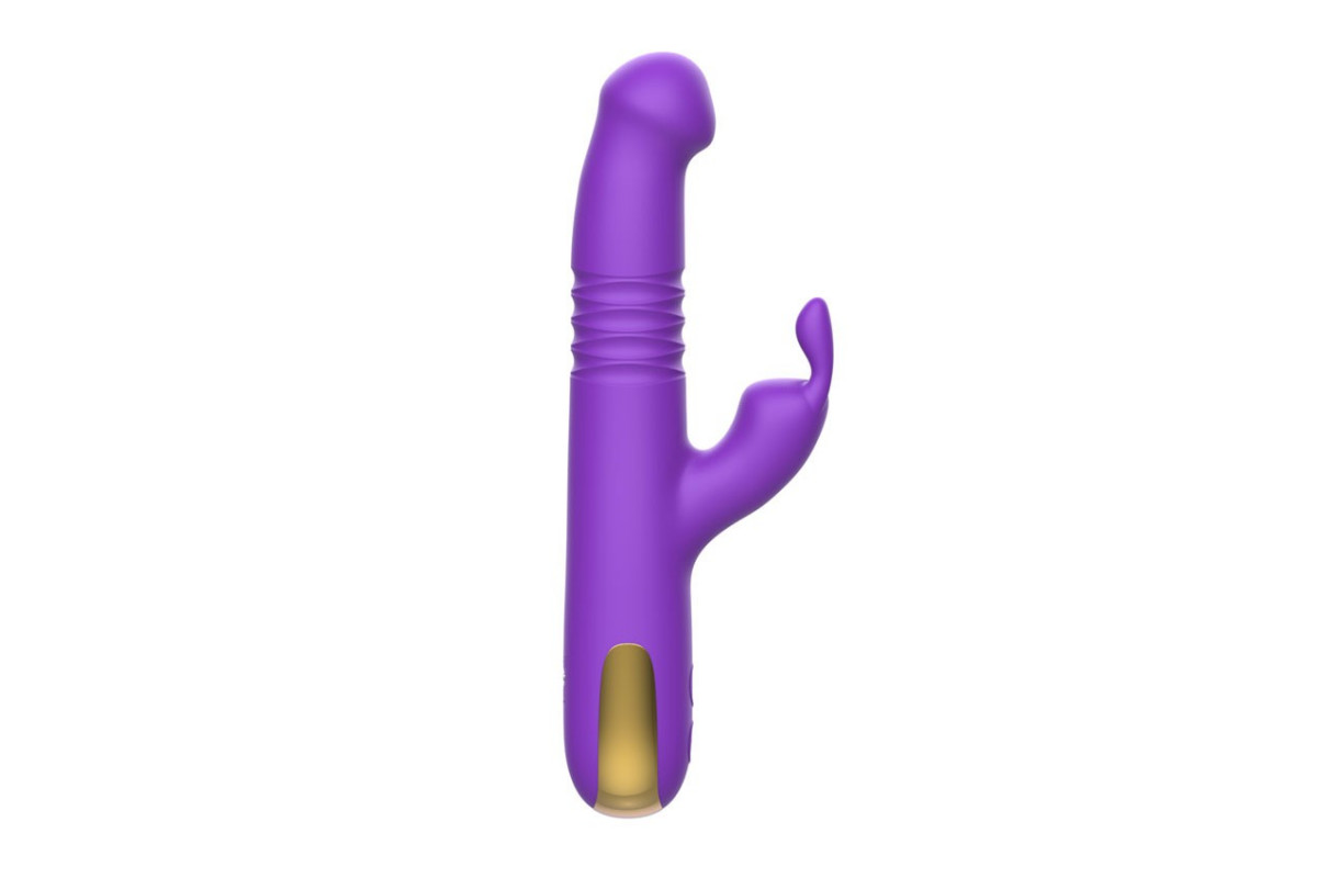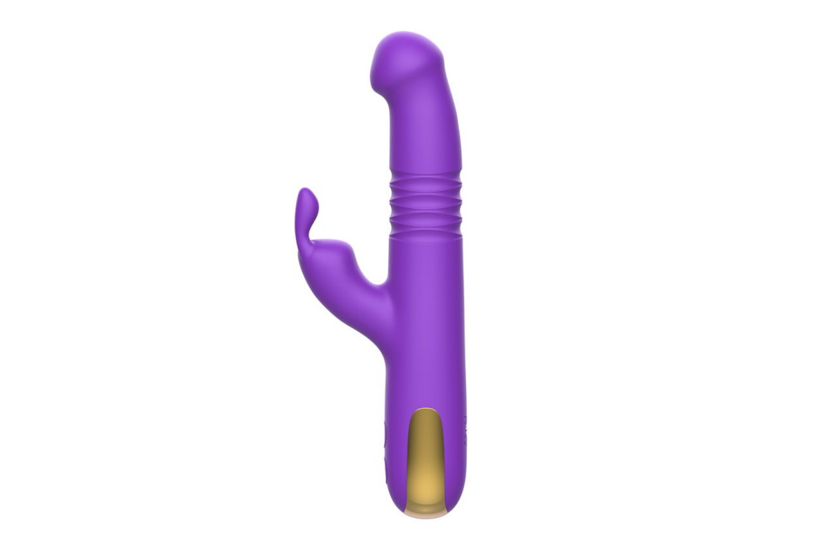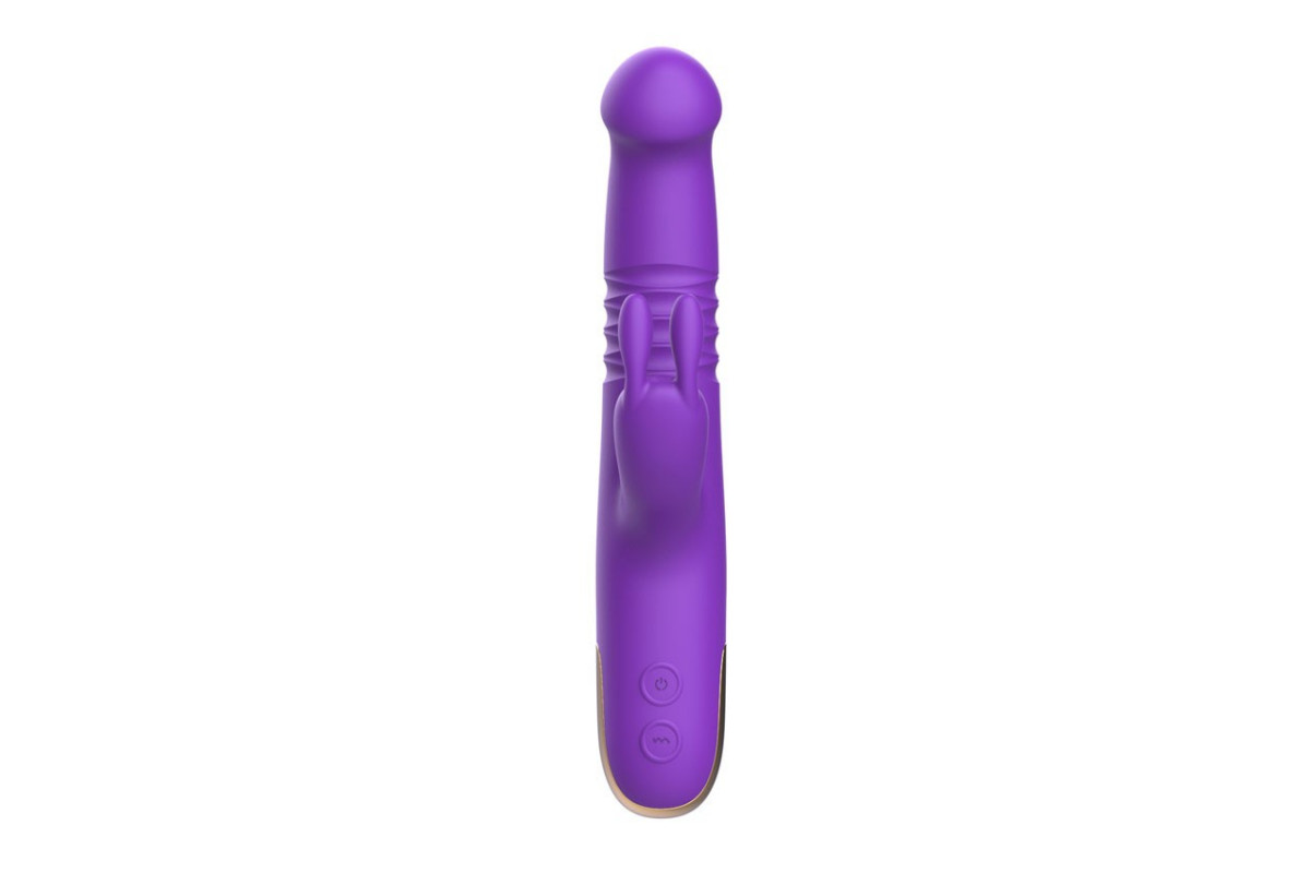 Фиолетовый вибратор-ротатор со стимулятором клитора и возвратно-поступательными движениями