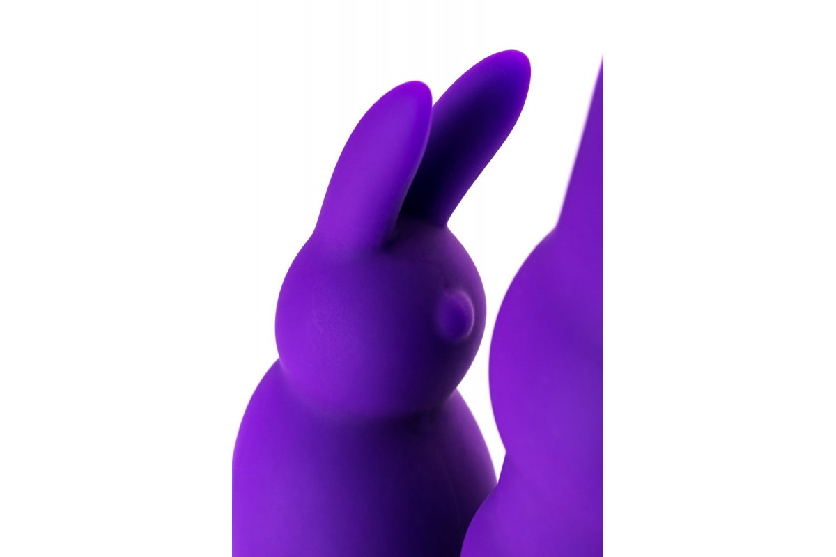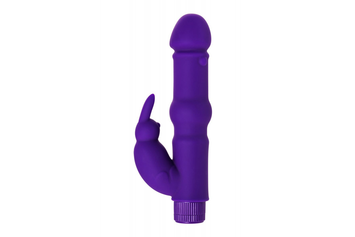 Фиолетовый вибратор с утолщением посередине и клиторальным зайчиком — идеальный выбор для насыщенных ощущений