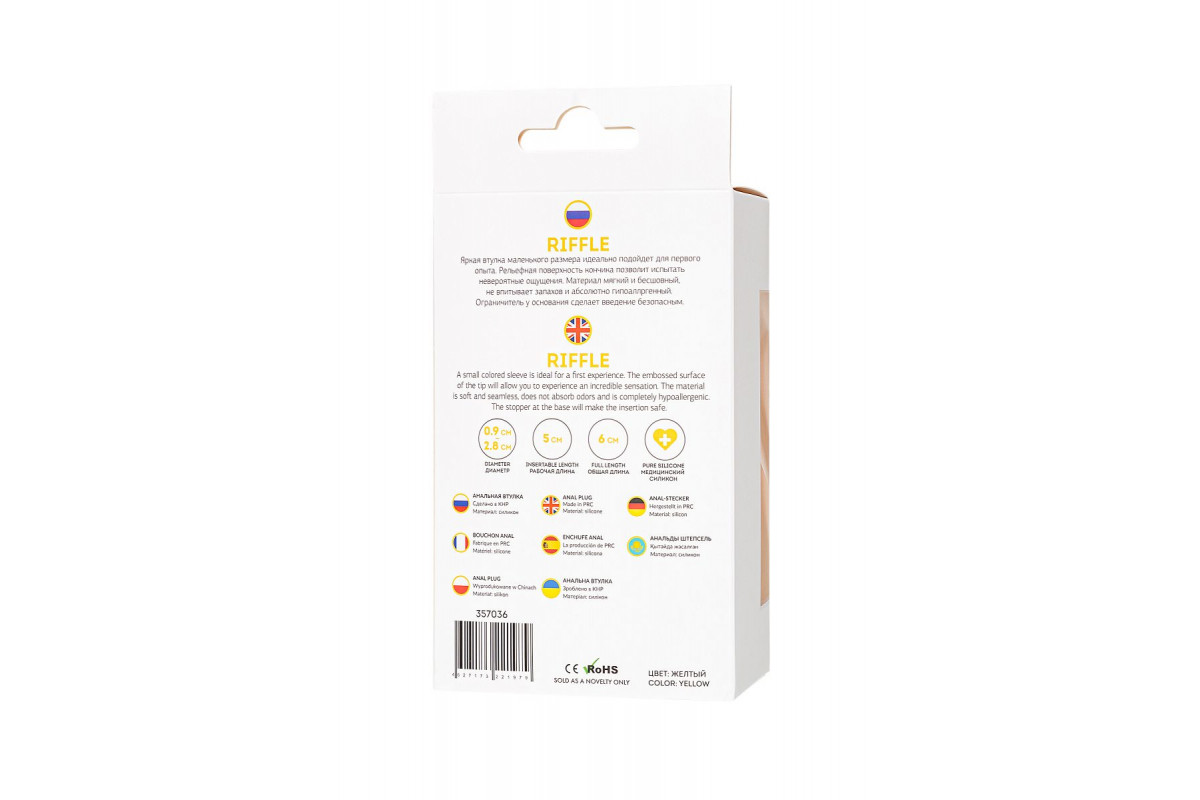 Желтая анальная втулка Riffle – яркое и эффектное дополнение для вашего удовольствия