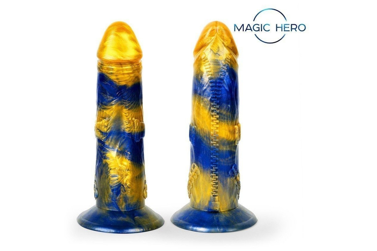 Желто-синий фантазийный вибратор с пультом ДУ — новый уровень удовольствия